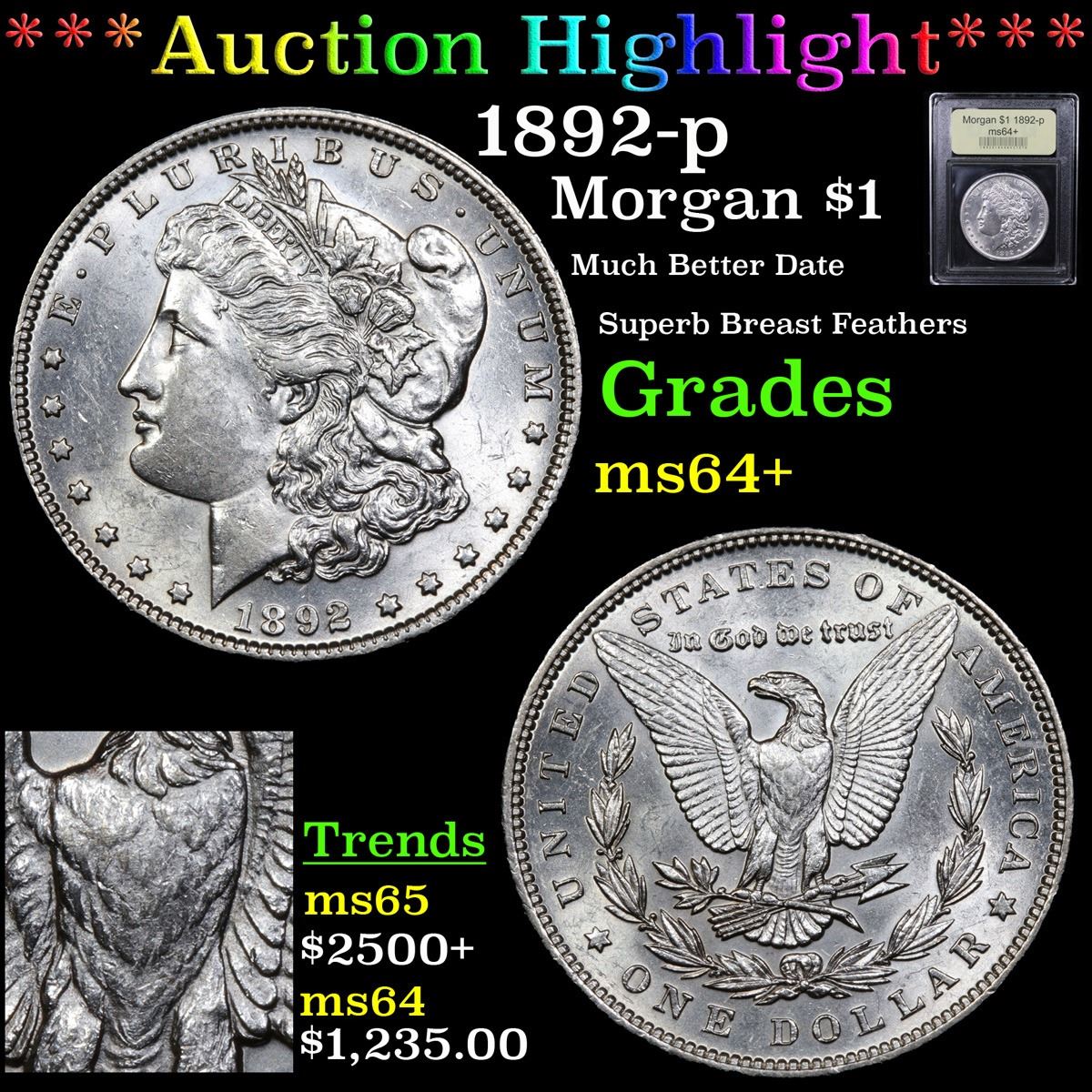 ***Auction Highlight*** 1892-p Much Better Date Superb Breast Feathers Morgan Dollar $1 Graded Choice+ Unc By USCG. A Corey's Pick, Bid to Win, Don't let it get Away Coin