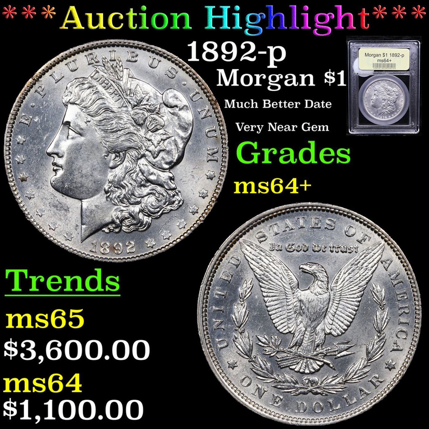 ***Auction Highlight*** 1892-p Morgan Dollar $1 Graded Choice+ Unc By USCG. A Corey's Pick, Bid to Win, Don't let it get Away Coin