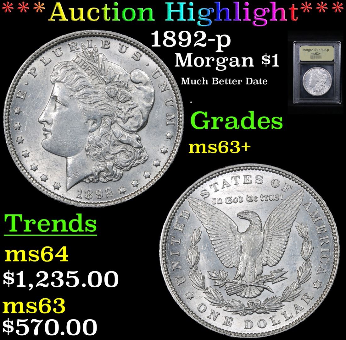 ***Auction Highlight*** 1892-p Much Better Date . Morgan Dollar $1 Graded Select+ Unc By USCG. A Corey's Pick, Bid to Win Coin