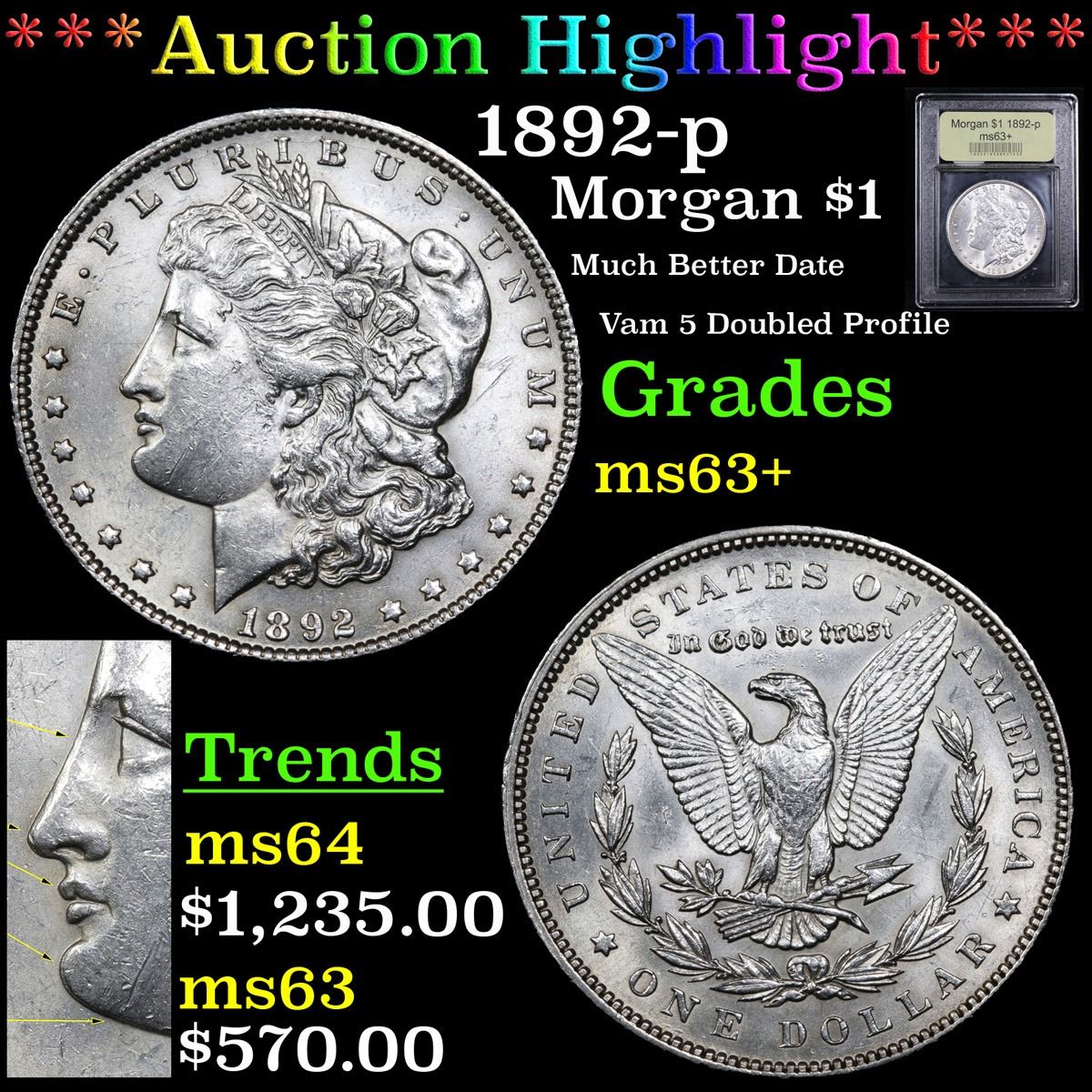 ***Auction Highlight*** 1892-p Much Better Date Vam 5 Doubled Profile Morgan Dollar $1 Graded Select+ Unc By USCG. A Corey's Pick, Bid to Win, Don't let it get Away Coin
