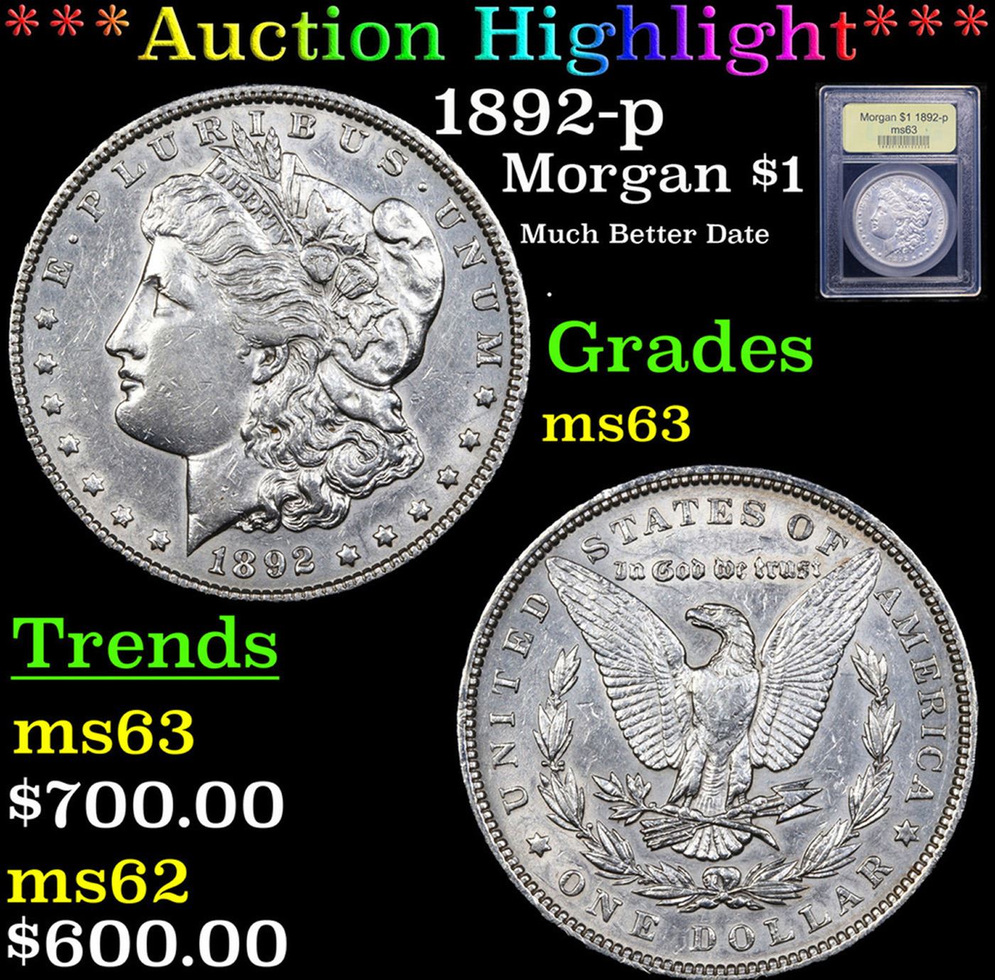 ***Auction Highlight*** 1892-p Morgan Dollar $1 Graded Select Unc By USCG.