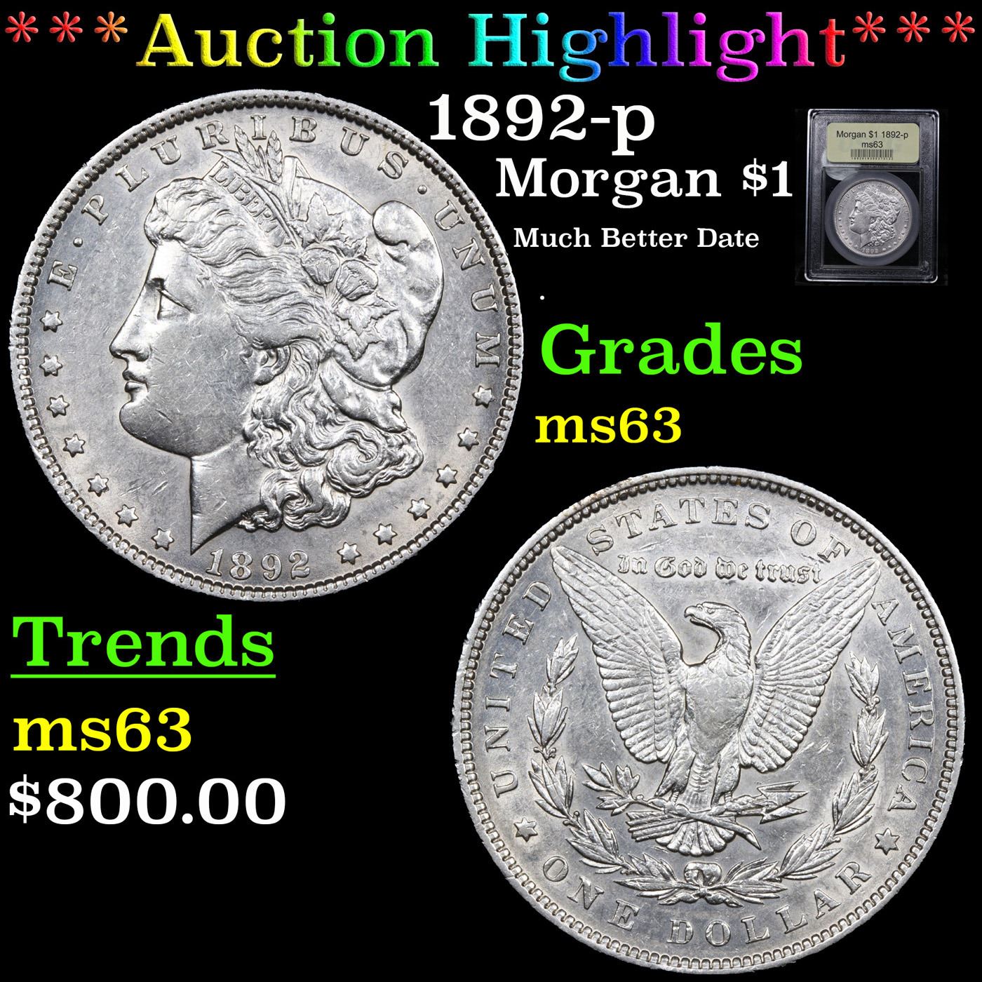 ***Auction Highlight*** 1892-p Morgan Dollar $1 Graded Select Unc By USCG.