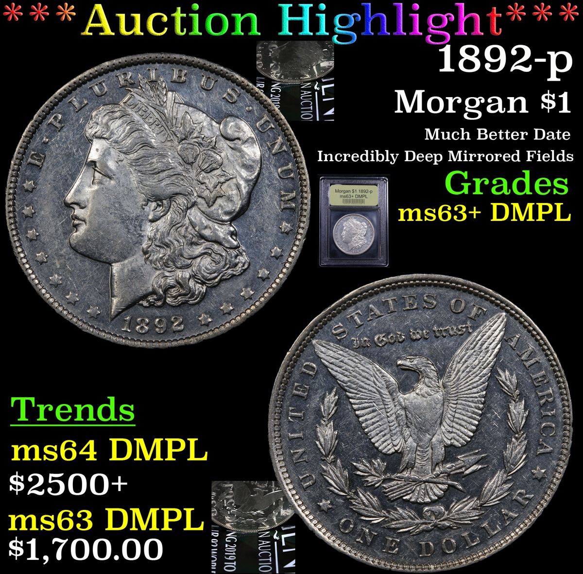 ***Auction Highlight*** 1892-p Morgan Dollar $1 Graded Select Unc+ DMPL By USCG. A Corey's Pick, Bid to Win, Don't let it get Away Coin