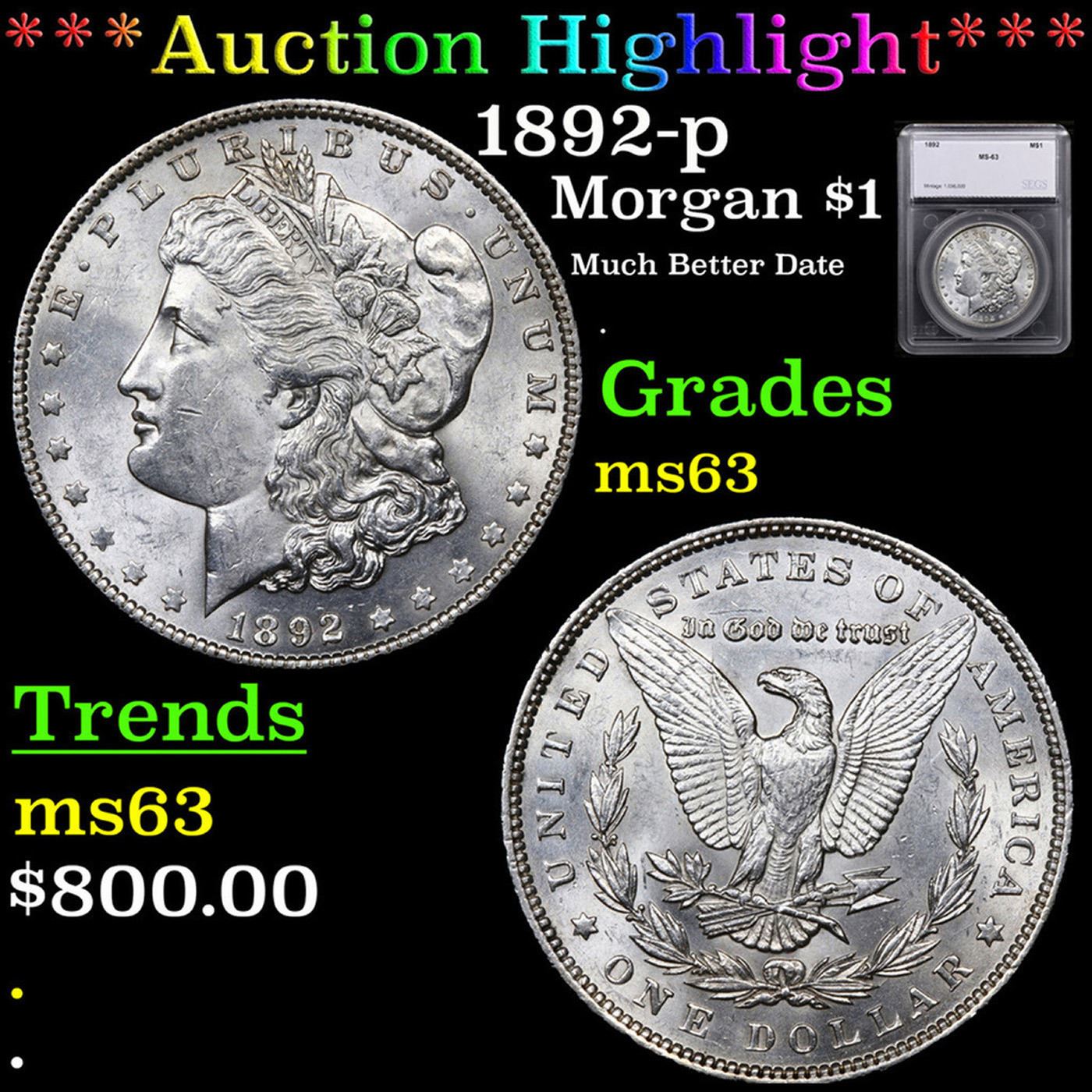 ***Auction Highlight*** 1892-p Morgan Dollar $1 Graded ms63 By SEGS.