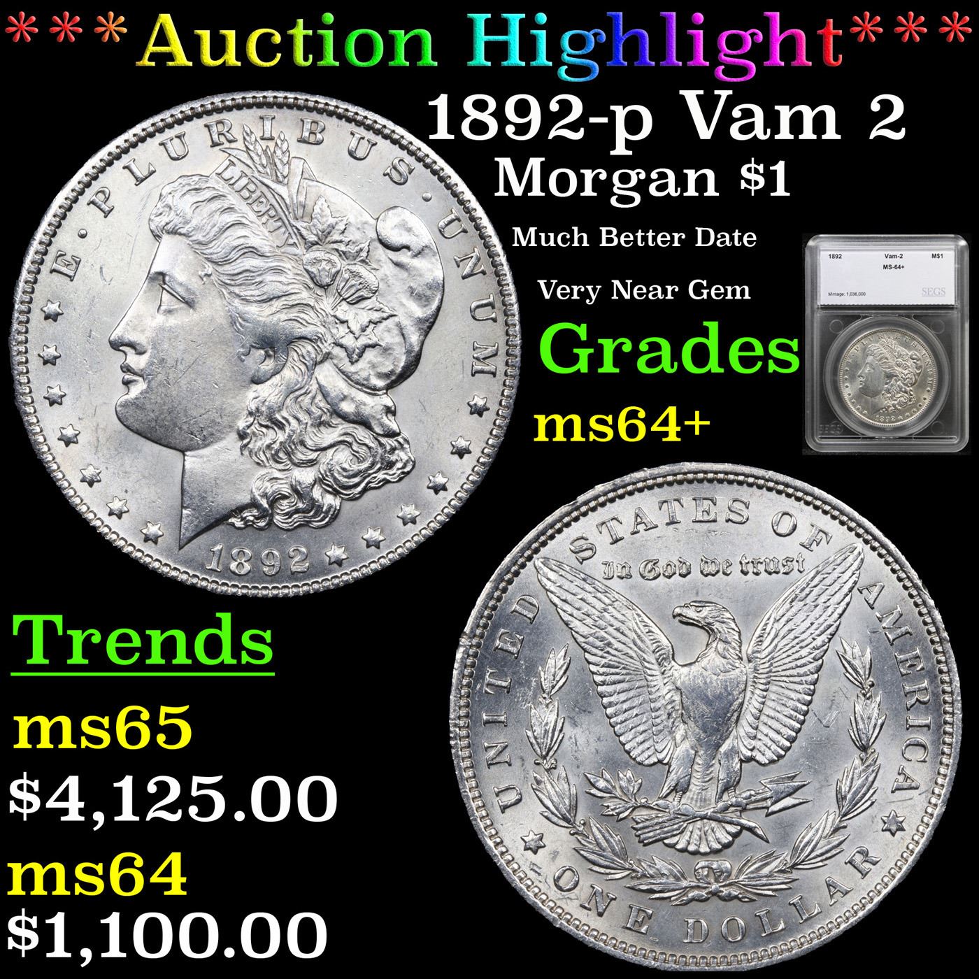 ***Auction Highlight*** 1892-p Vam 2 Morgan Dollar $1 Graded ms64+ By SEGS.