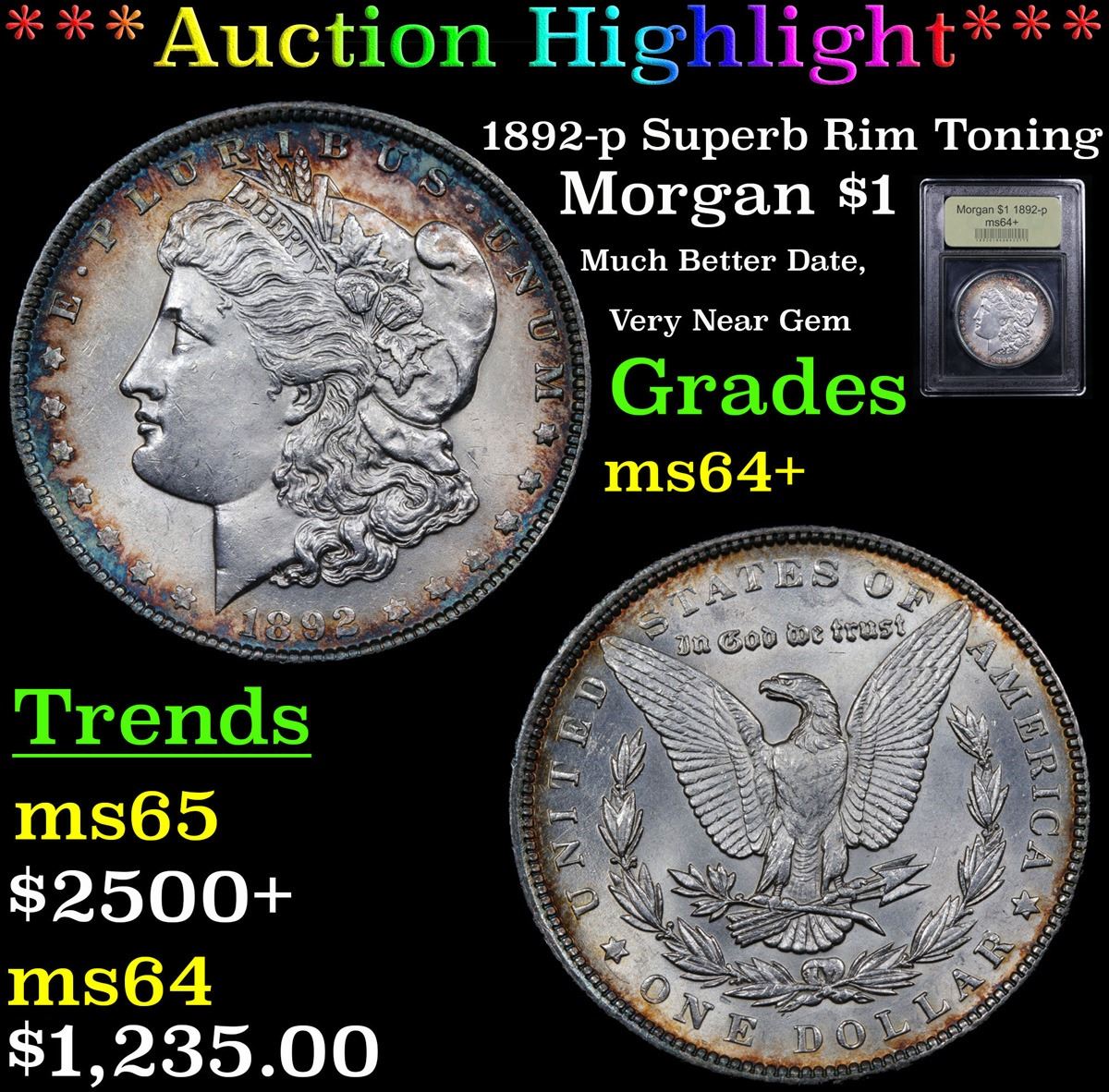 ***Auction Highlight*** 1892-p Superb Rim Toning Morgan Dollar $1 Graded Choice+ Unc By USCG. A Corey's Pick, Bid to Win, Don't let it get Away Coin