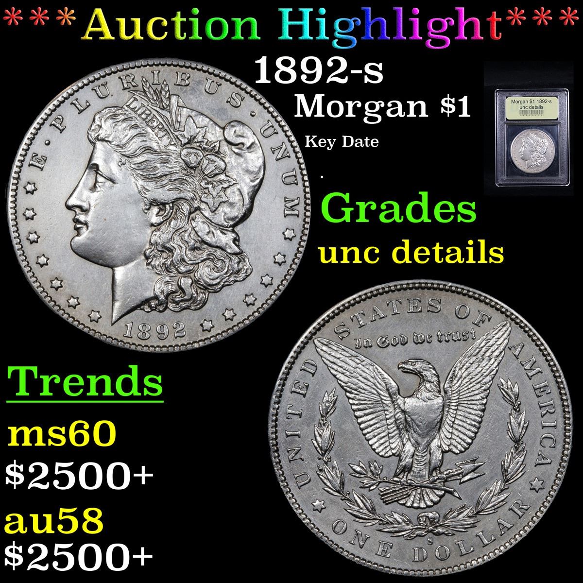 ***Auction Highlight*** 1892-s Key Date . Morgan Dollar $1 Graded Unc Details By USCG.