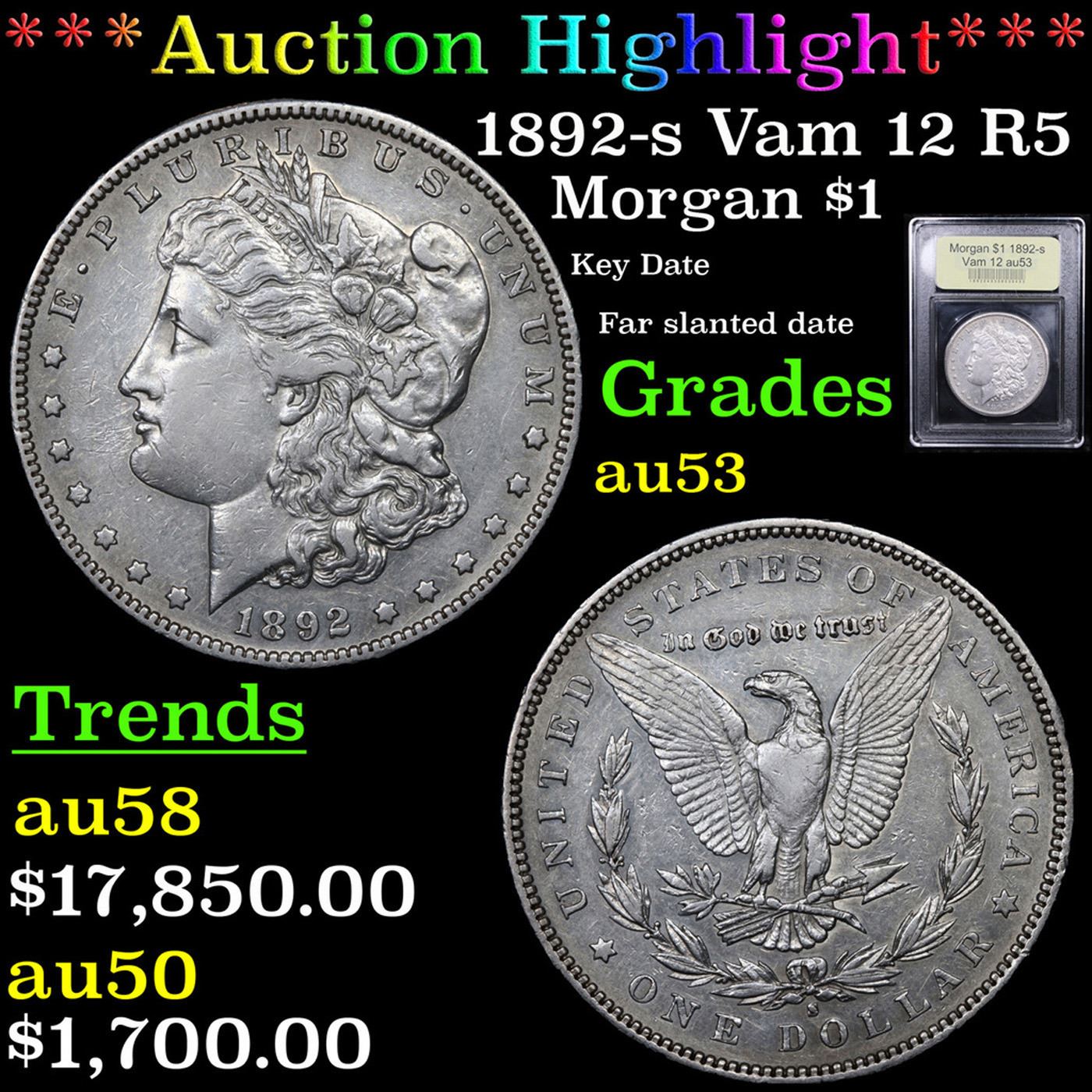 ***Auction Highlight*** 1892-s Vam 12 R5 Morgan Dollar $1 Graded Select AU By USCG (fc)