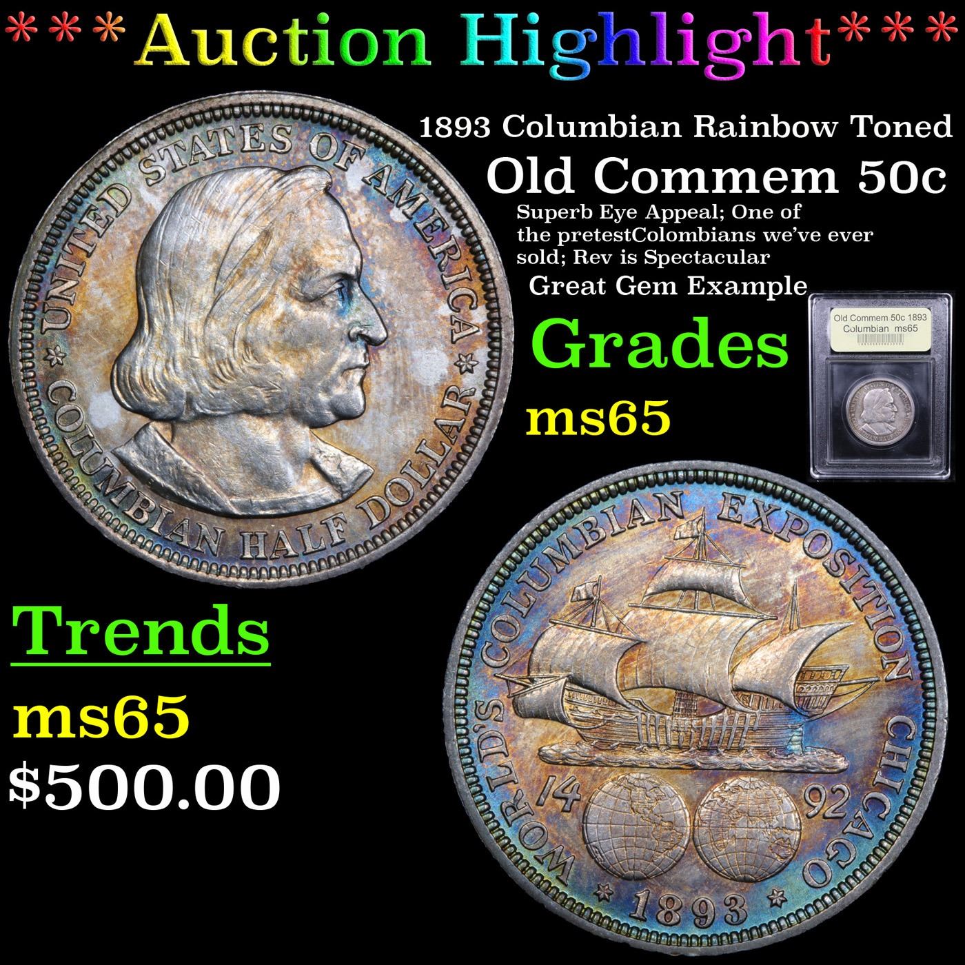 ***Auction Highlight*** 1893 Columbian Rainbow Toned Old Commem Half Dollar 50c Graded GEM Unc By US