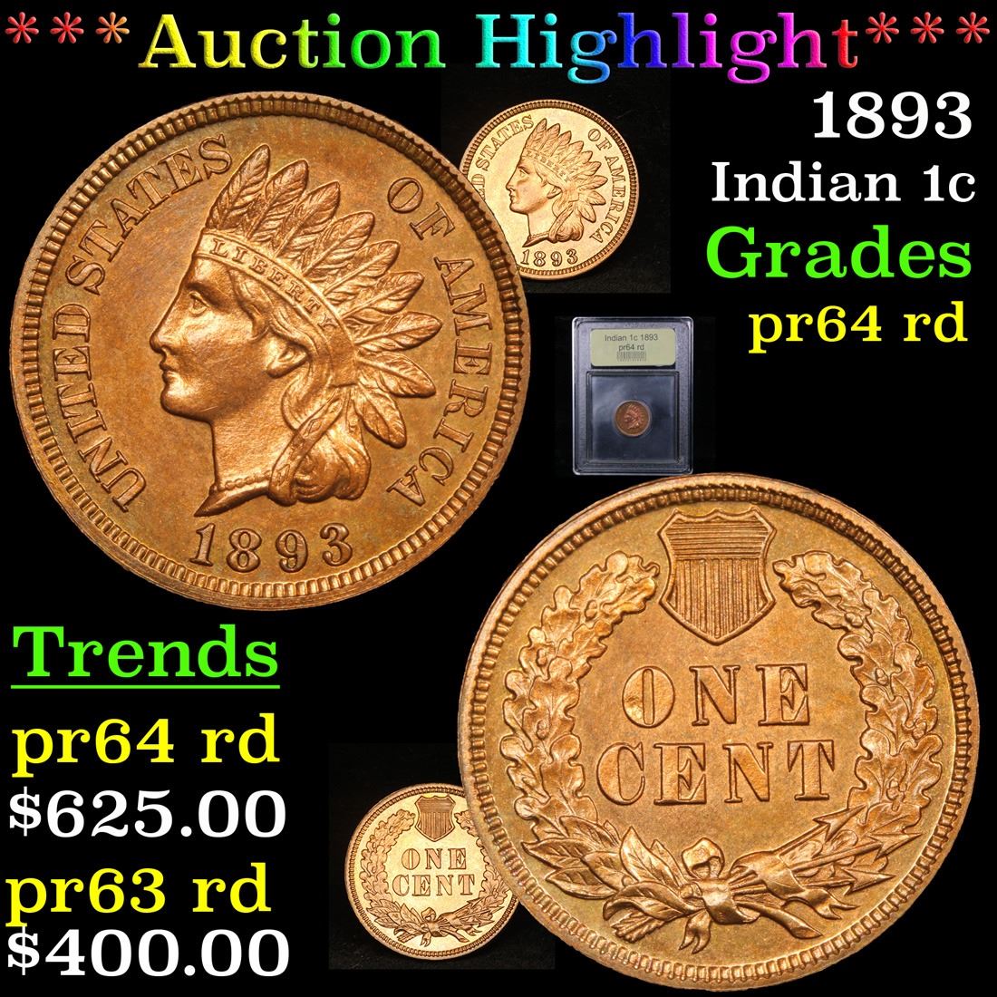 ***Auction Highlight*** 1893 . . Indian Cent 1c Graded Choice Proof Red By USCG. A Corey's Pick, Bid to Win, Don't let it get Away Coin