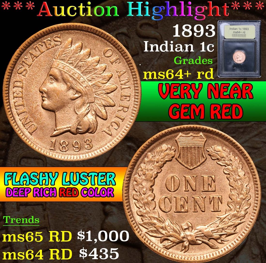 ***Auction Highlight*** 1893 . . Indian Cent 1c Graded Choice+ Unc RD By USCG. A Corey's Pick
