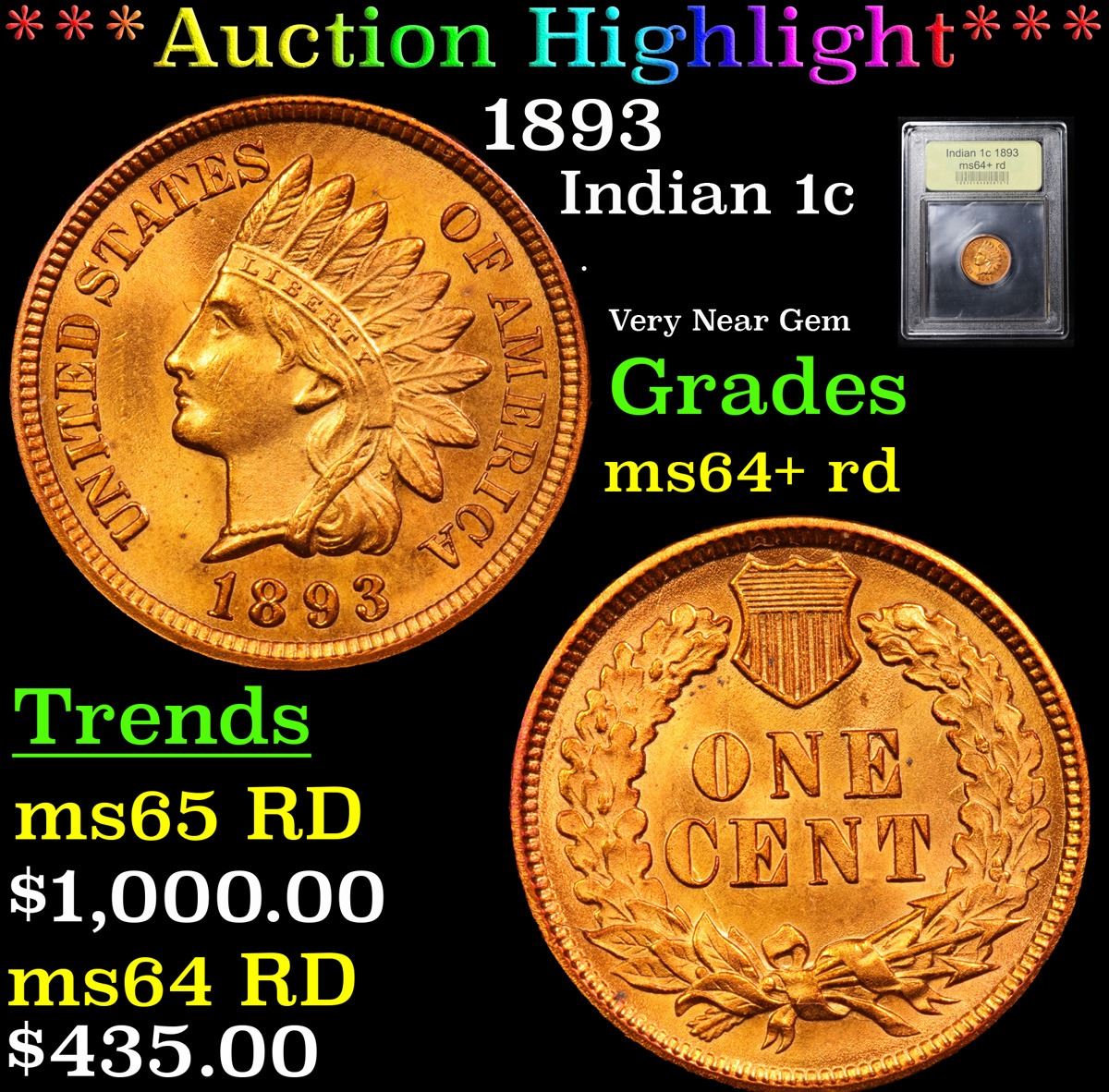 ***Auction Highlight*** 1893 . Very Near Gem Indian Cent 1c Graded Choice+ Unc RD By USCG. A Corey's Pick, Bid to Win Coin