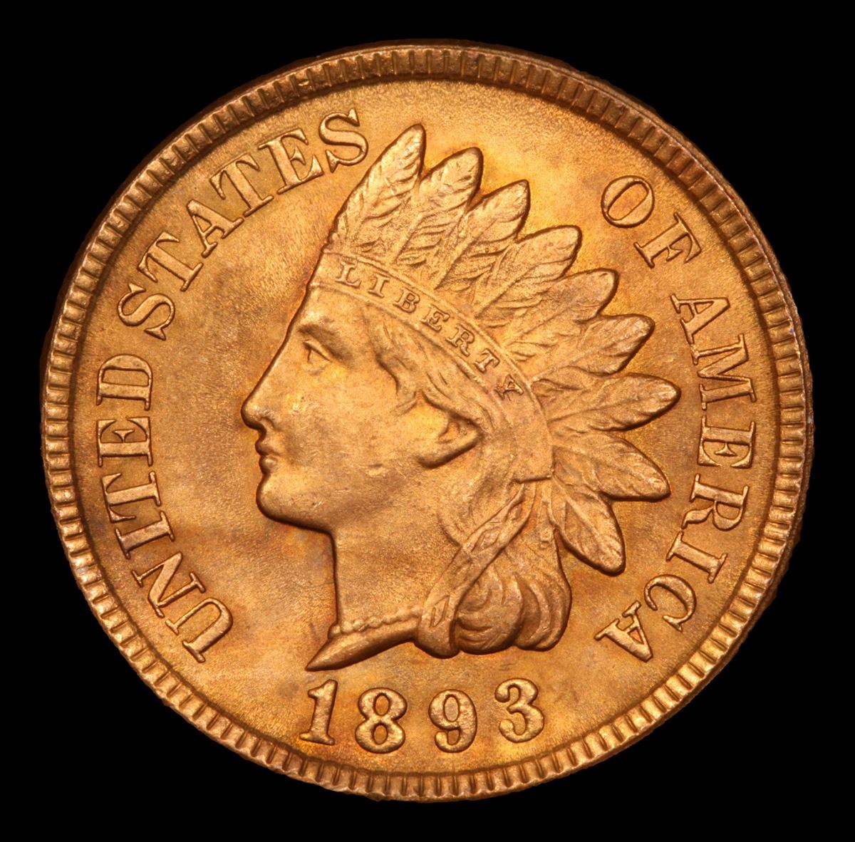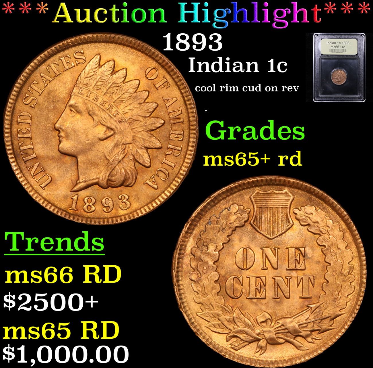 ***Auction Highlight*** 1893 cool rim cud on rev . Indian Cent 1c Graded Gem+ Unc RD By USCG. 0