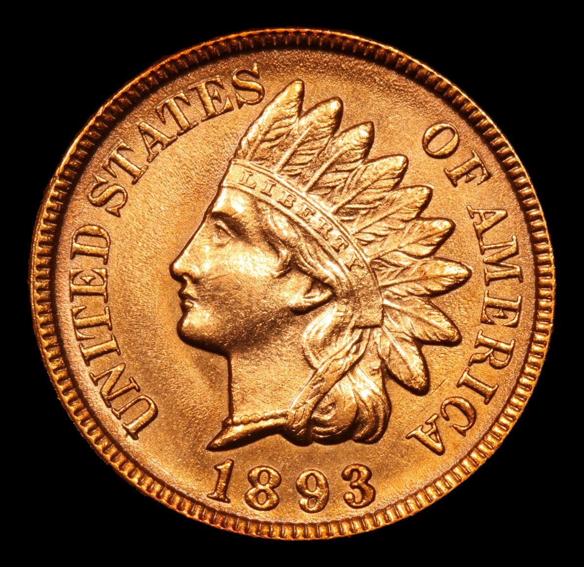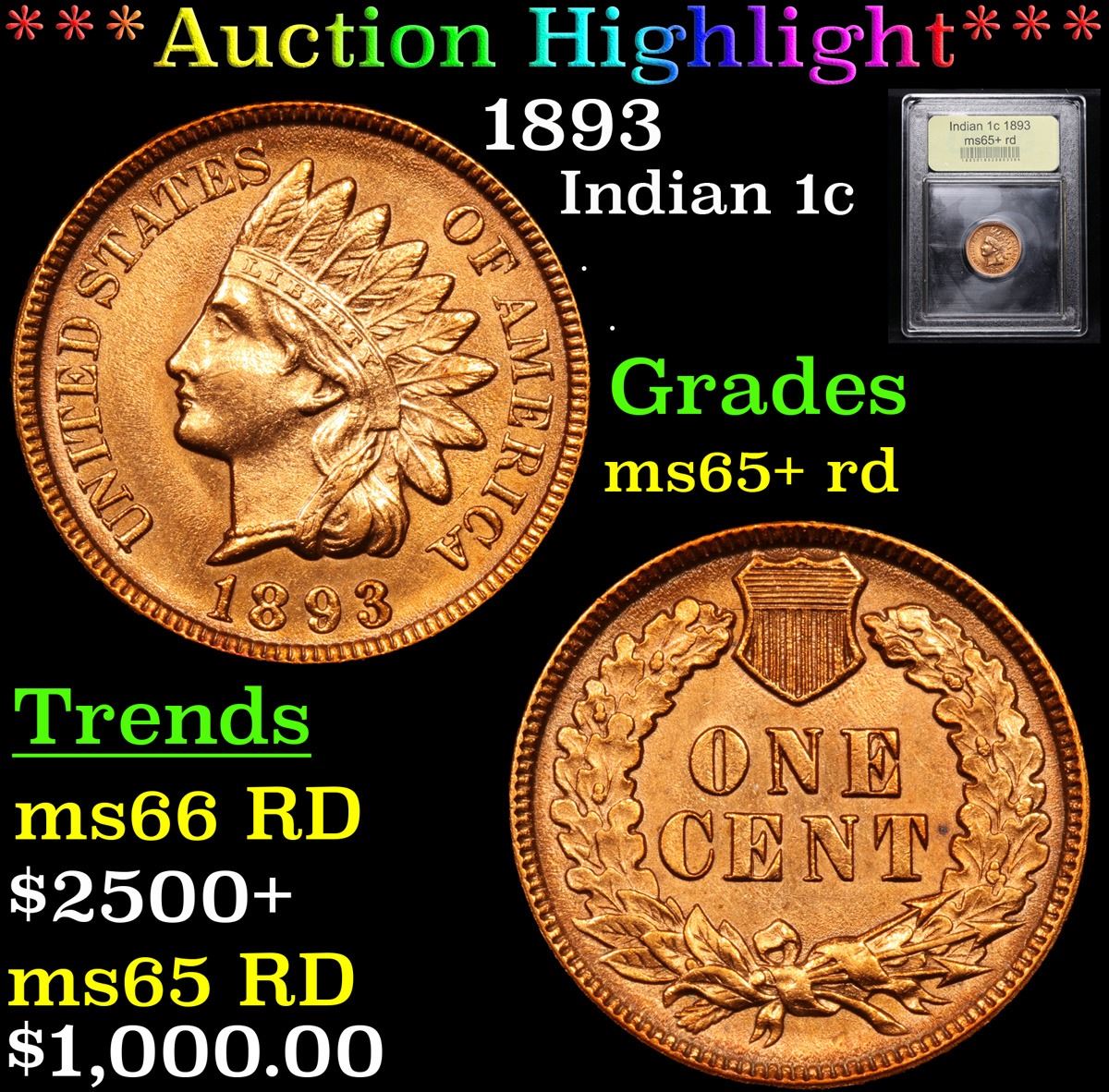 ***Auction Highlight*** 1893 Indian Cent 1c Graded Gem+ Unc RD by USCG. Stunning example. Great red color.