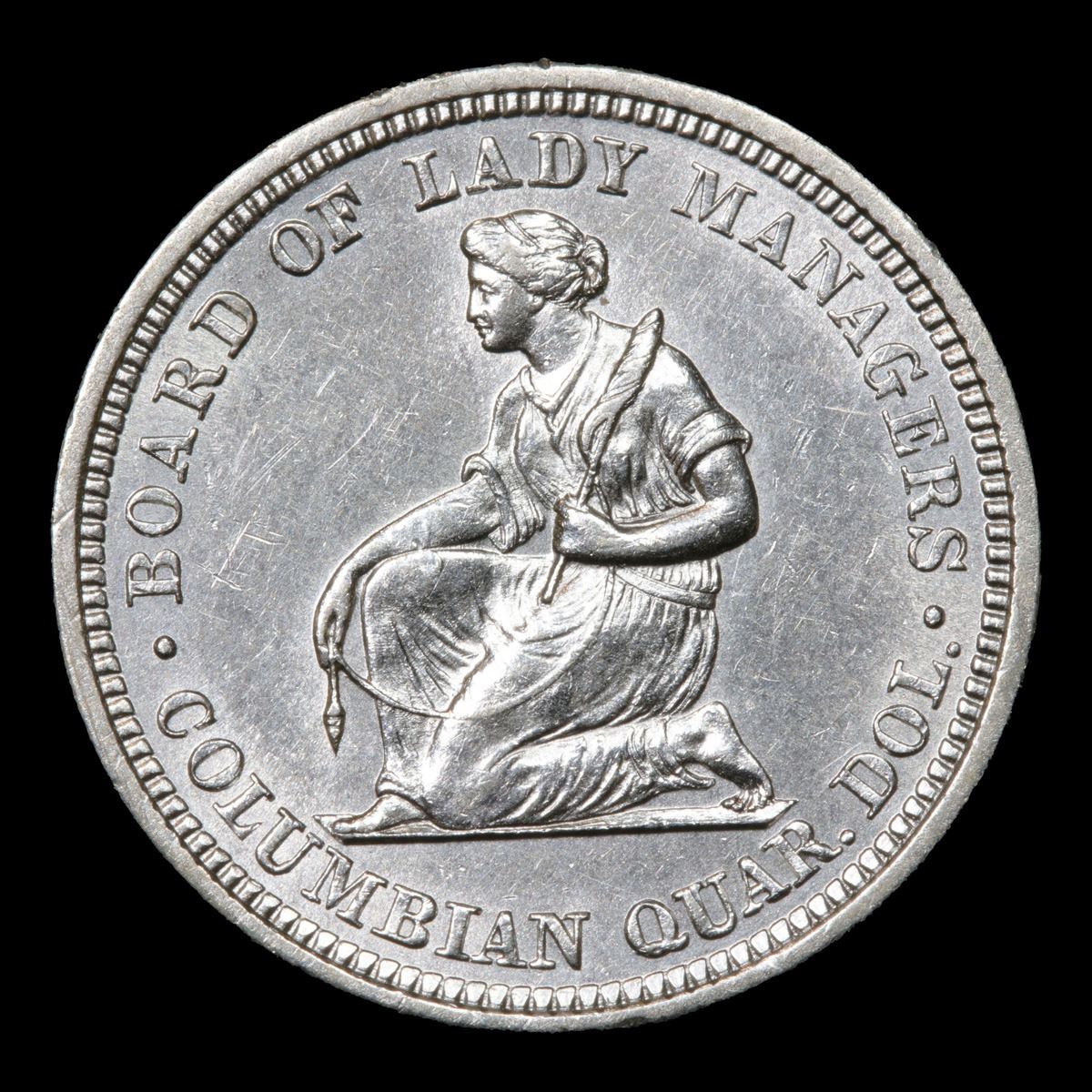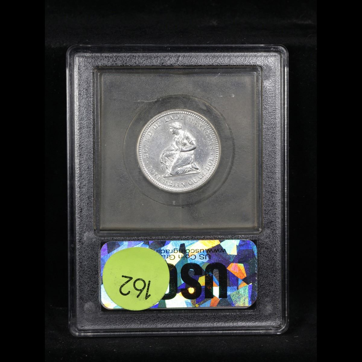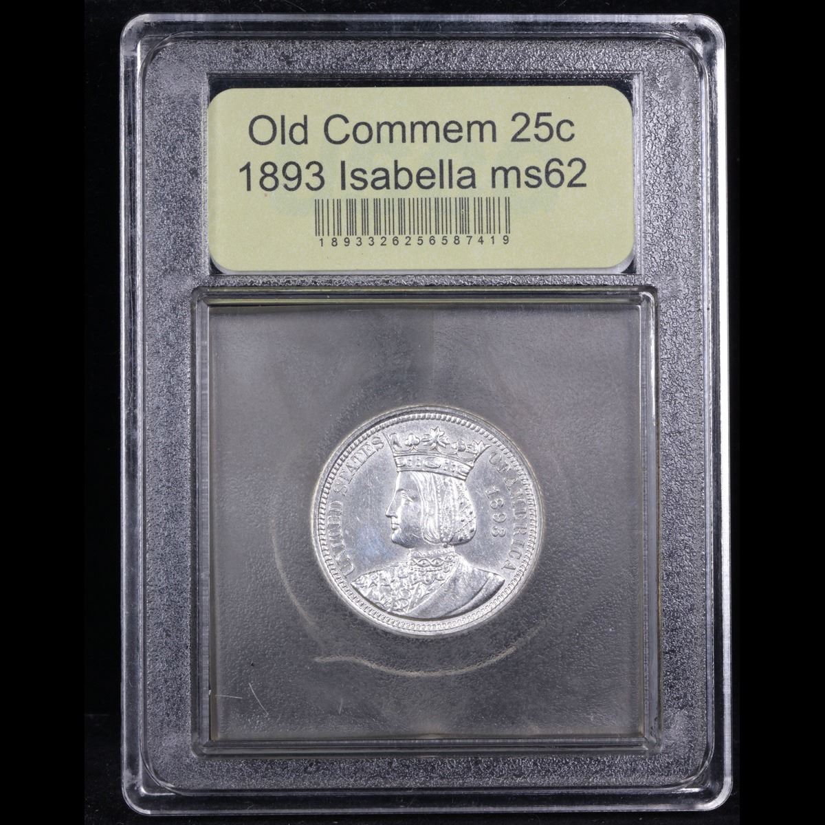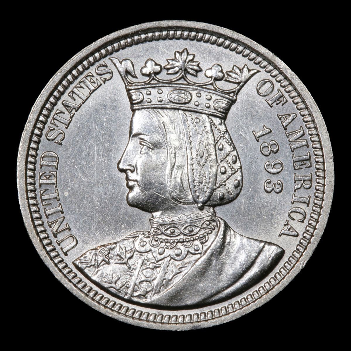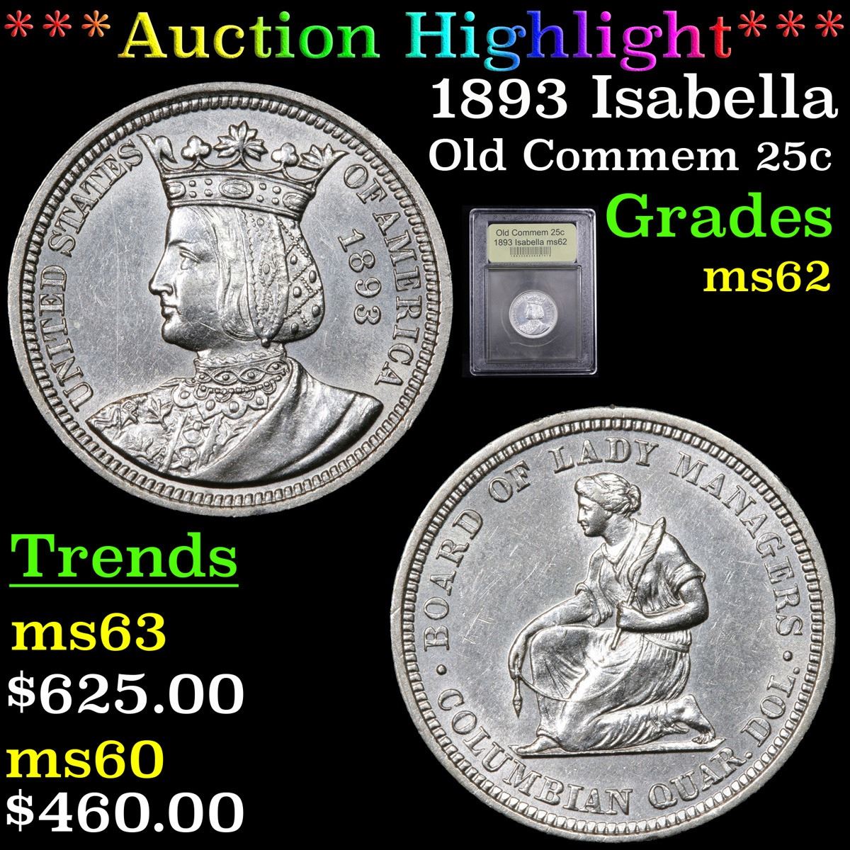 ***Auction Highlight*** 1893 Isabella . . Isabella Quarter 25c Graded Select Unc By USCG. When Examining an Isabella Quarter on the Obverse, wear first shows in the area of the Crown’s Central Oval Jewel and on Isabella’s cheek. Reverse wear will first be noted on the Strand of Wool Resting on the Kneeling Spinner’s Thigh. Due to Die Wear, Raised or Sharp Definition of the Strand of Wool is not the norm. This area can display a Slight Weakness of Strike, which is par for the Design and should not be Labeled Wear. A Corey's Pick, Bid to Win Coin