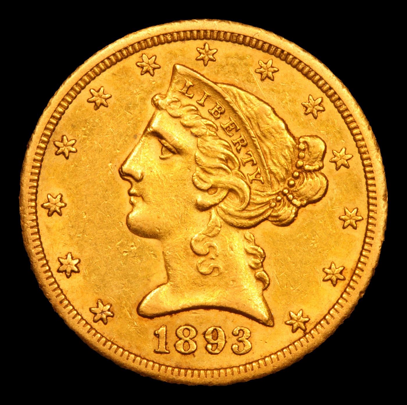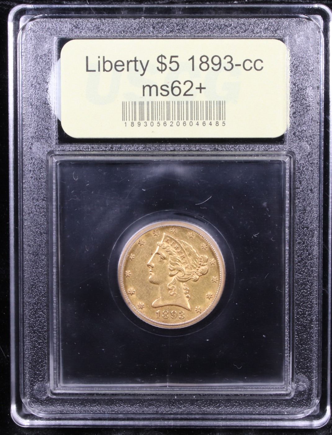 ***Auction Highlight*** 1893-cc Gold Liberty Half Eagle $5 Graded Select Unc By USCG. Beautiful medium rose-orange patina blankets surfaces that are sharply struck, frosty in finish, and smooth enough to tempt Choice Mint State quality. The Carson City Mint half eagle series passed into history in 1893 with a mintage of 60,000 coins. This is the scarcest of the 1890s CC-mint fives in AU and Mint State grades, and the historical significance of the issue guarantees continued numismatic demand. A Corey's Pick, Bid to Win, Don't let it get Away, you might not find its equal Coin. I give this coin my highest recommendation