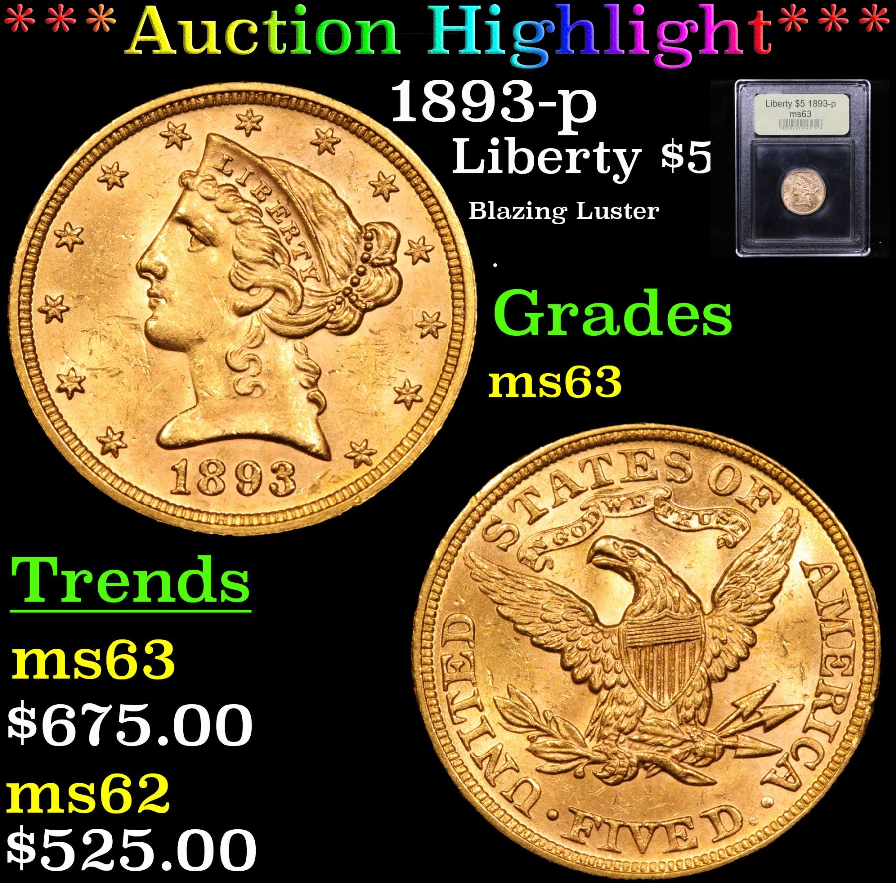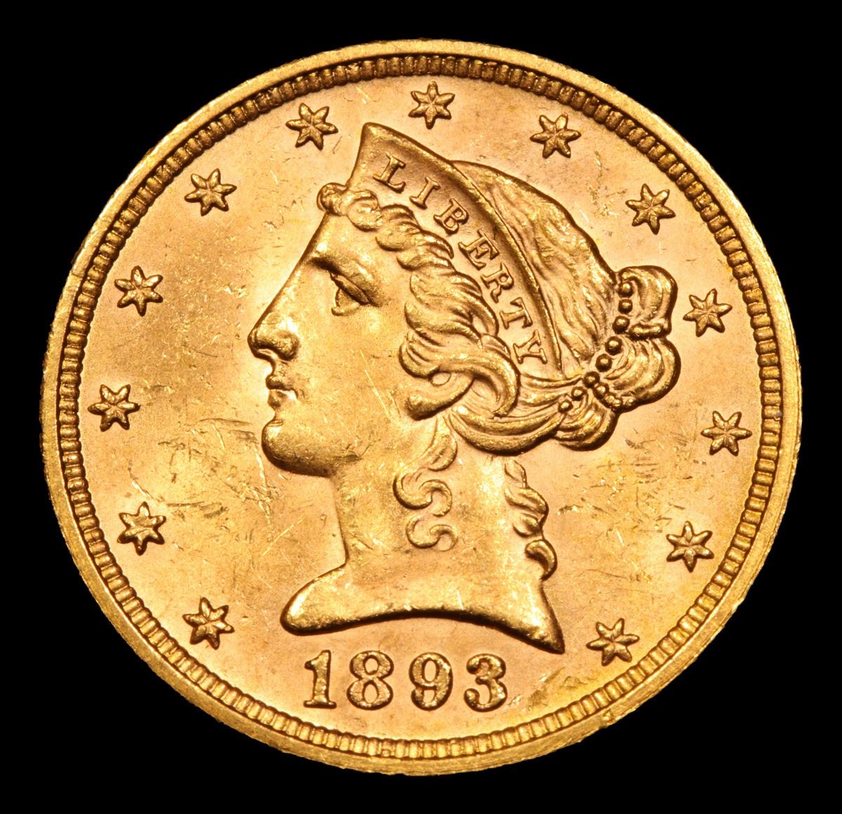 ***Auction Highlight*** 1893-p Blazing Luster . Gold Liberty Half Eagle $5 Graded Select Unc By USCG. A Corey's Pick