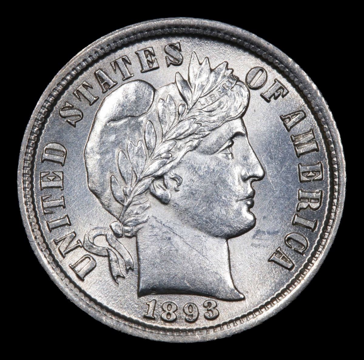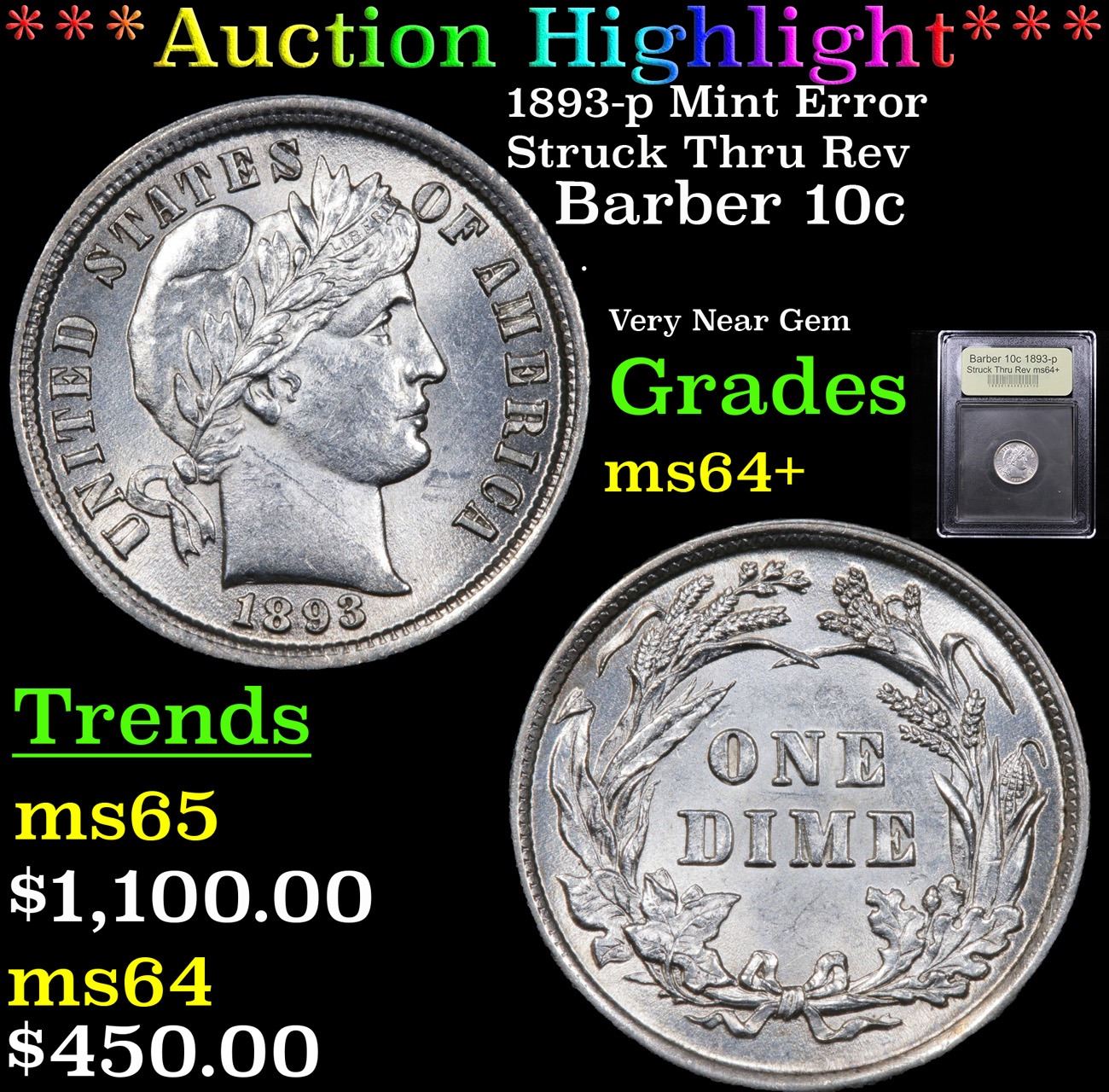 ***Auction Highlight*** 1893-p Mint Error Struck Thru Rev . Very Near Gem Barber Dime 10c Graded Choice+ Unc By USCG. A Corey's Pick, Bid to Win Coin