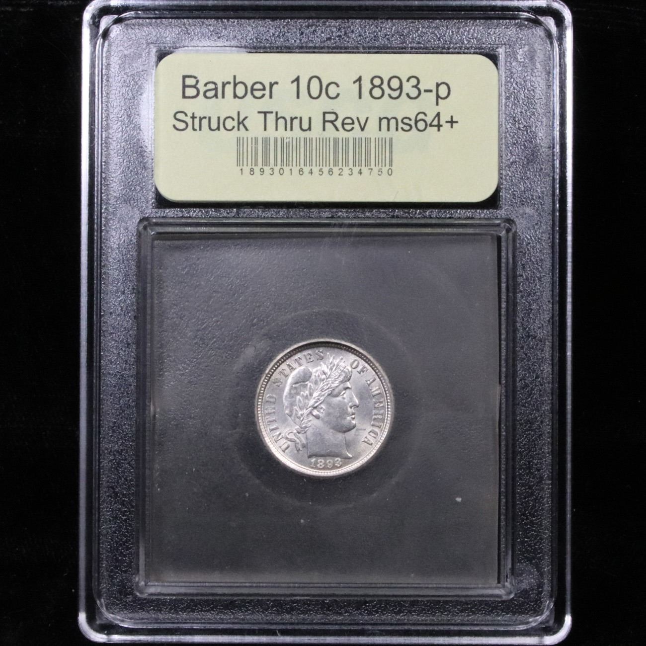 ***Auction Highlight*** 1893-p Mint Error Struck Thru Rev Barber Dime 10c Graded Choice+ Unc By USCG