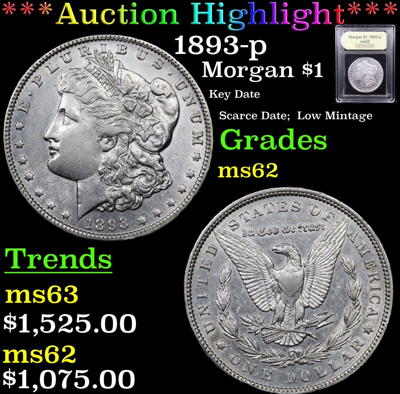 ***Auction Highlight*** 1893-p Morgan Dollar $1 Graded Select Unc By USCG. The popular and eagerly sought 1893 is a low mintage circulation strike Morgan dollar issue with a reported mintage of just 378,000 coins.