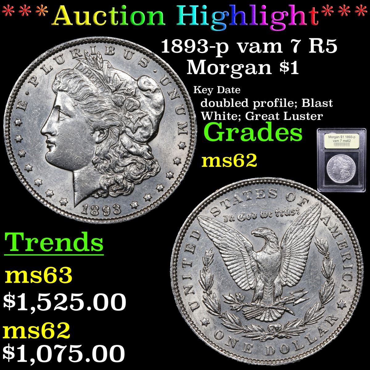 ***Auction Highlight*** 1893-p vam 7 I2 R5 Morgan Dollar $1 Graded Select Unc By USCG (fc)