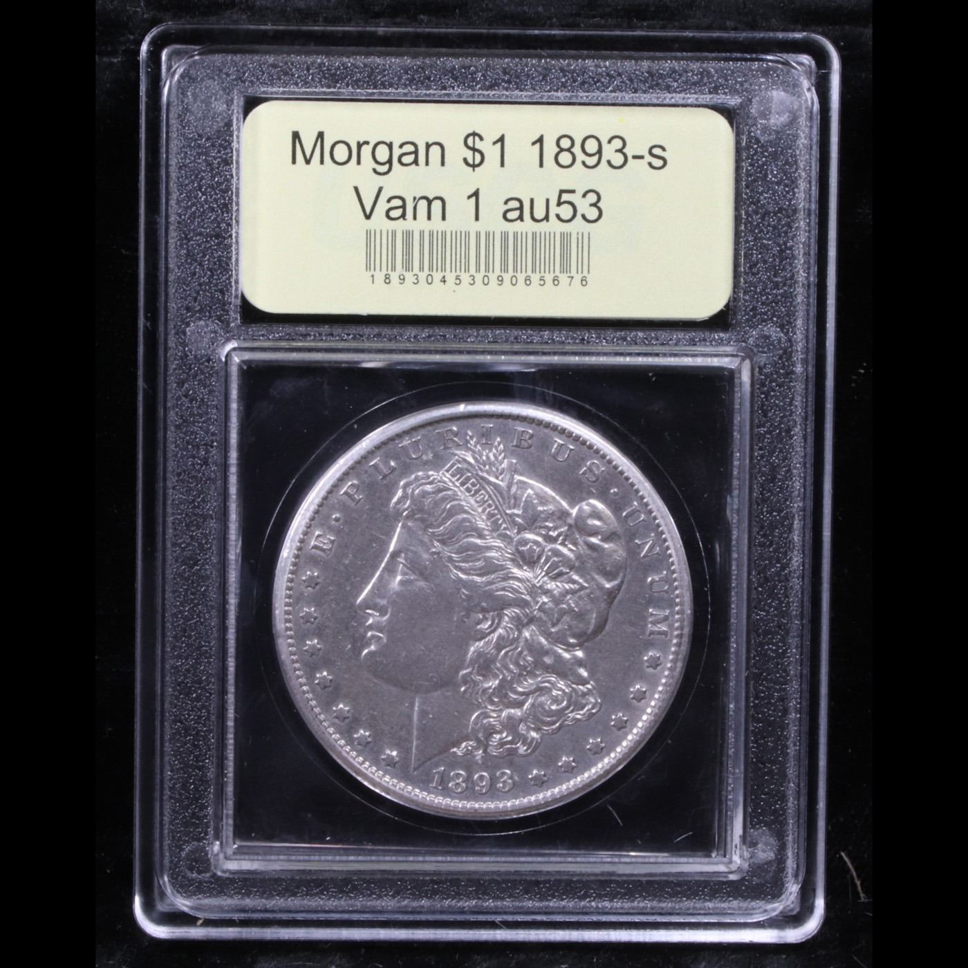 ***Auction Highlight*** 1893-s Vam 1 R5 Morgan Dollar $1 Graded Select AU By USCG.        Moderate luster remains in protected portions of the fields throughout this About Uncirculated 1893-S dollar, and each side shows a cast of light golden toning that corresponds to light, high-point wear. The pleasing surfaces are relatively smooth, and eye appeal is excellent for the grade. The far date with upright ‘s” confirm the VAM-1 variety.  Attractive AU-level 1893-S dollars are in constant demand among Morgan dollar enthusiasts, and this attractive AU piece will be a highlight of a great collection.  A Corey's Pick, Bid to Win, Don't let it get Away, you might not find its equal Coin.  I give this coin my highest recommendation
