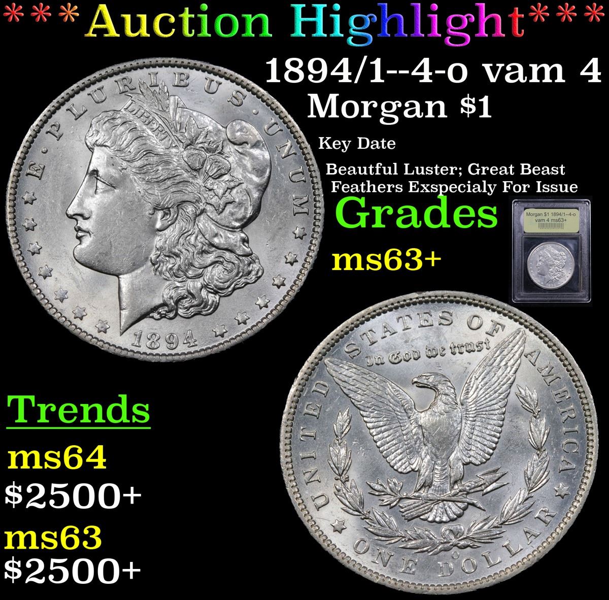 ***Auction Highlight*** 1894/1--4-o vam 4 Morgan Dollar $1 Graded Select+ Unc By USCG. 0