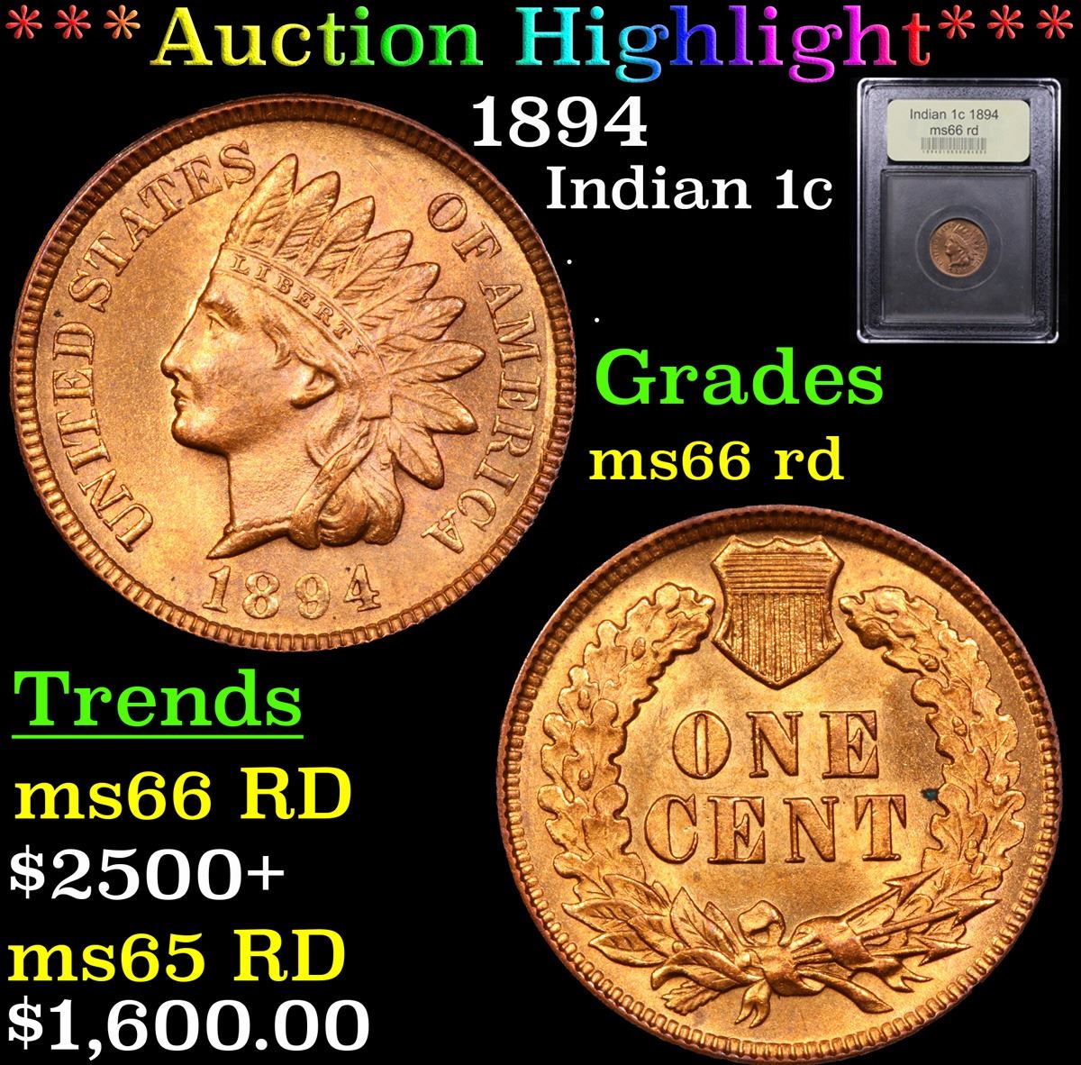 ***Auction Highlight*** 1894 . . Indian Cent 1c Graded GEM+ Unc RD By USCG. A Corey's Pick, Bid to Win, Don't let it get Away Coin