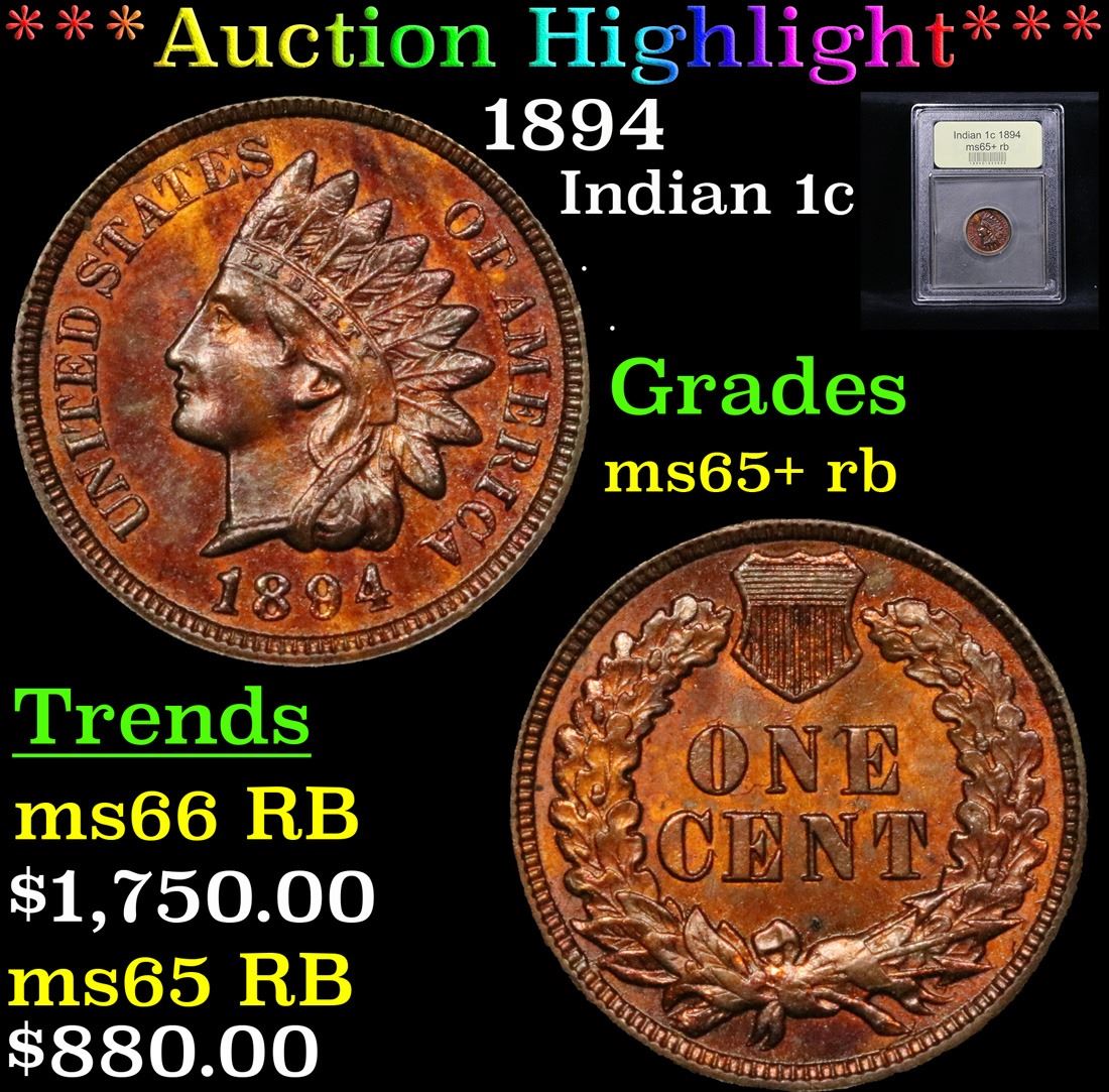 ***Auction Highlight*** 1894 . . Indian Cent 1c Graded Gem+ Unc RB By USCG.