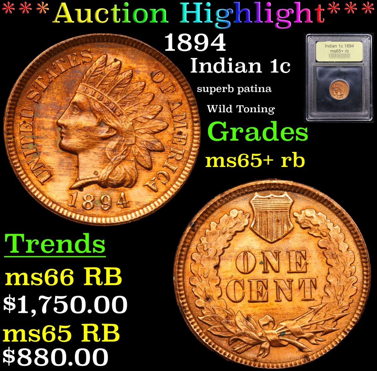 ***Auction Highlight*** 1894 Indian Cent 1c Graded Gem+ Unc RB By USCG. A Corey's Pick, Bid to Win, Don't let it get Away Coin