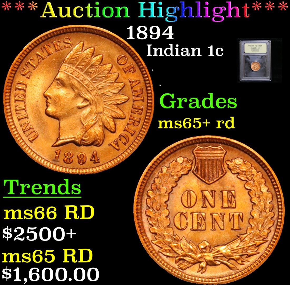 ***Auction Highlight*** 1894 . . Indian Cent 1c Graded Gem+ Unc RD By USCG. A Corey's Pick, Bid to Win, Don't let it get Away, you might not find its equal Coin. I give this coin my highest recommendation