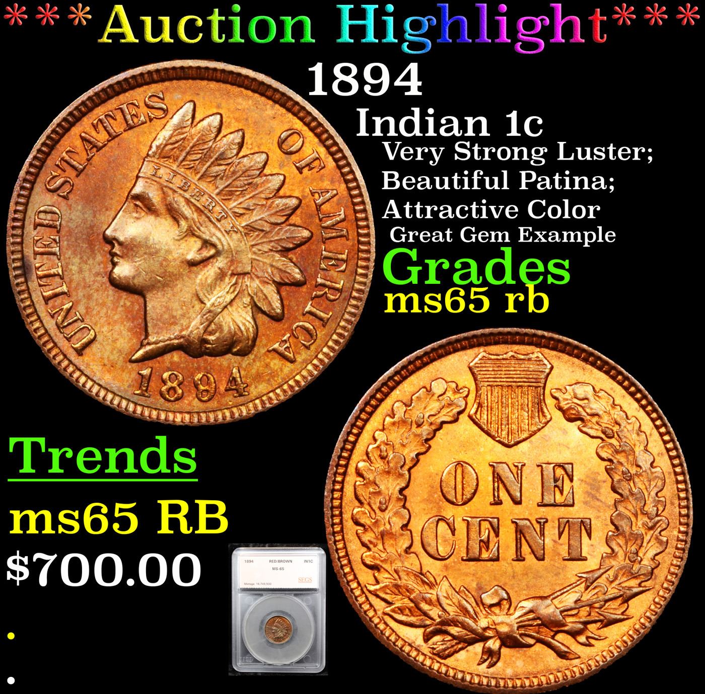 ***Auction Highlight*** 1894 Indian Cent 1c Graded ms65 rb By SEGS. A Corey's Pick, Bid to Win Coin