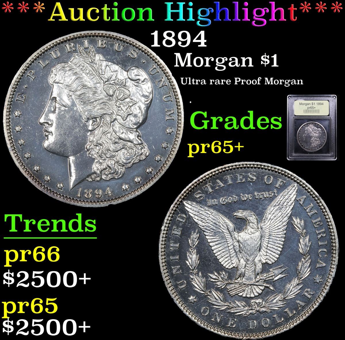 ***Auction Highlight*** 1894 Ultra rare Proof Morgan . Morgan Dollar $1 Graded GEM+ Proof By USCG. A Corey's Pick, Bid to Win, Don't let it get Away Coin