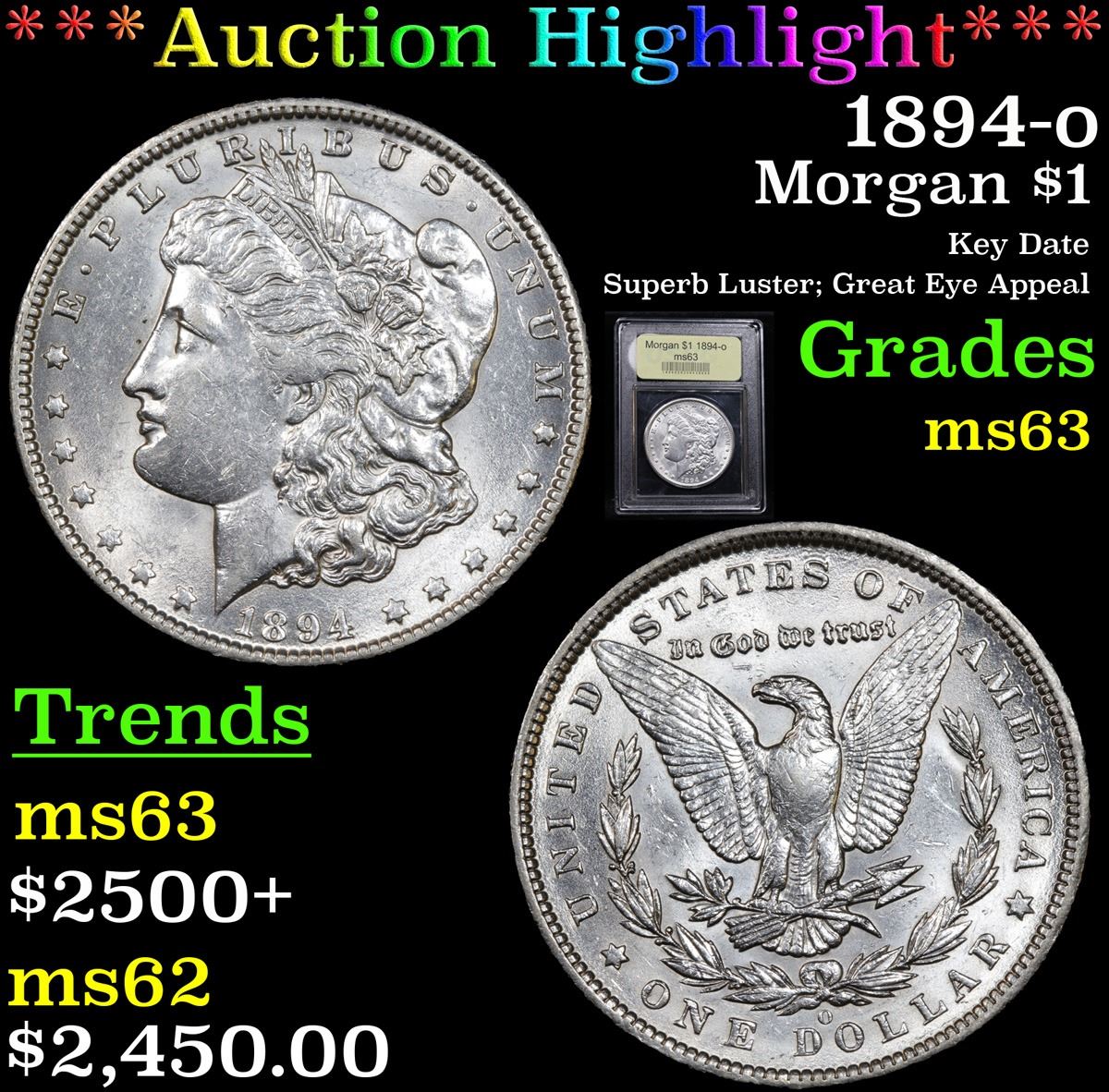 ***Auction Highlight*** 1894-o Key Date Superb Luster; Great Eye Appeal Morgan Dollar $1 Graded Select Unc By USCG. A Corey's Pick, Bid to Win Coin