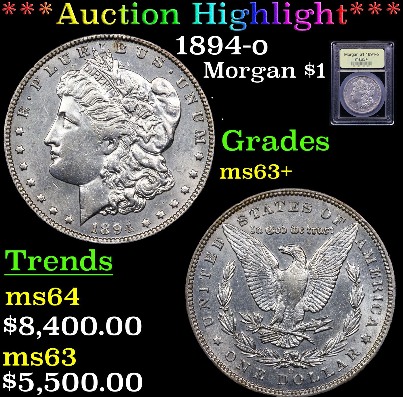 ***Auction Highlight*** 1894-o Morgan Dollar $1 Graded Select+ Unc By USCG.
