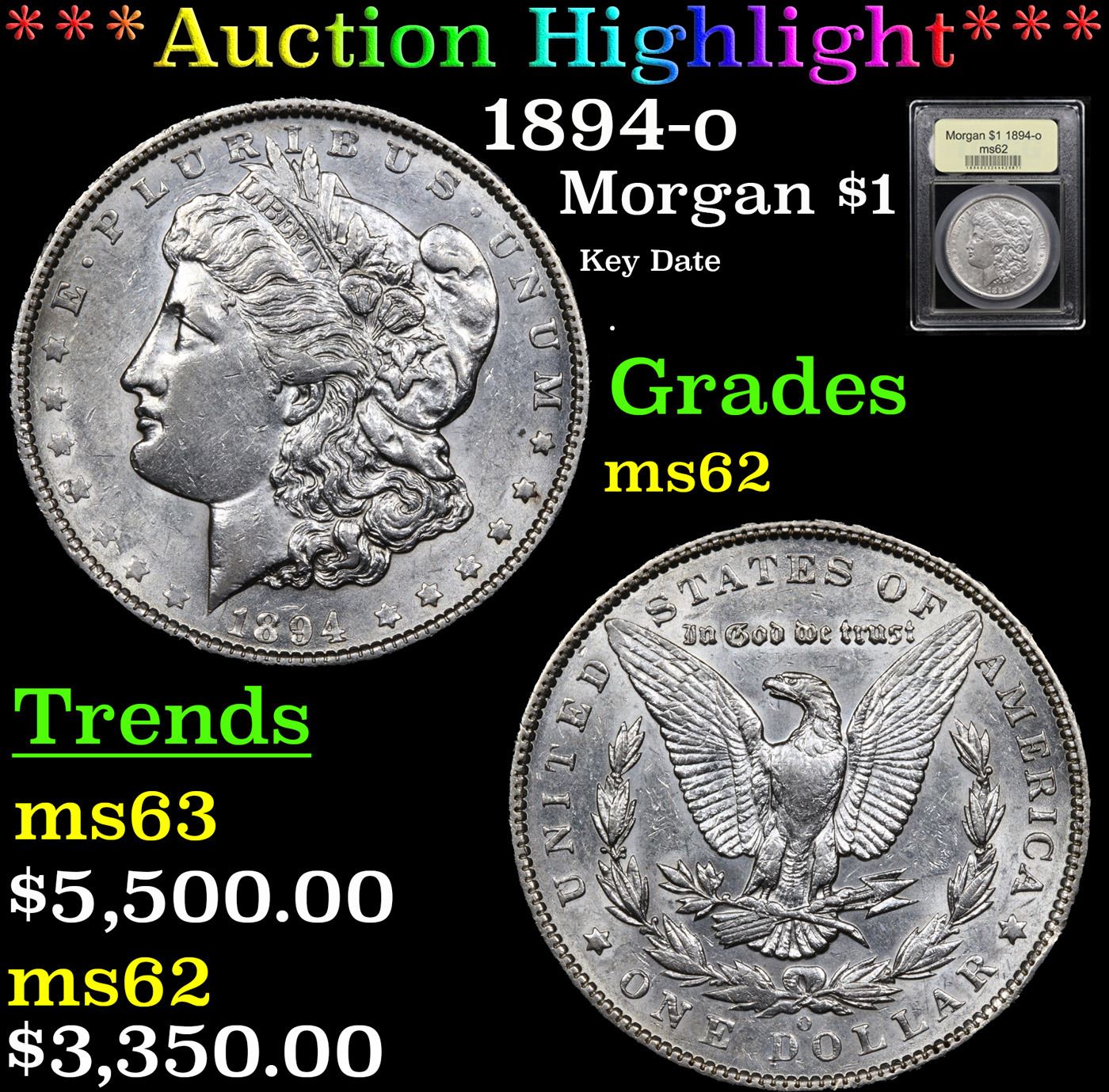 ***Auction Highlight*** 1894-o Morgan Dollar $1 Graded Select Unc By USCG. A Corey's Pick, Bid to Win Coin