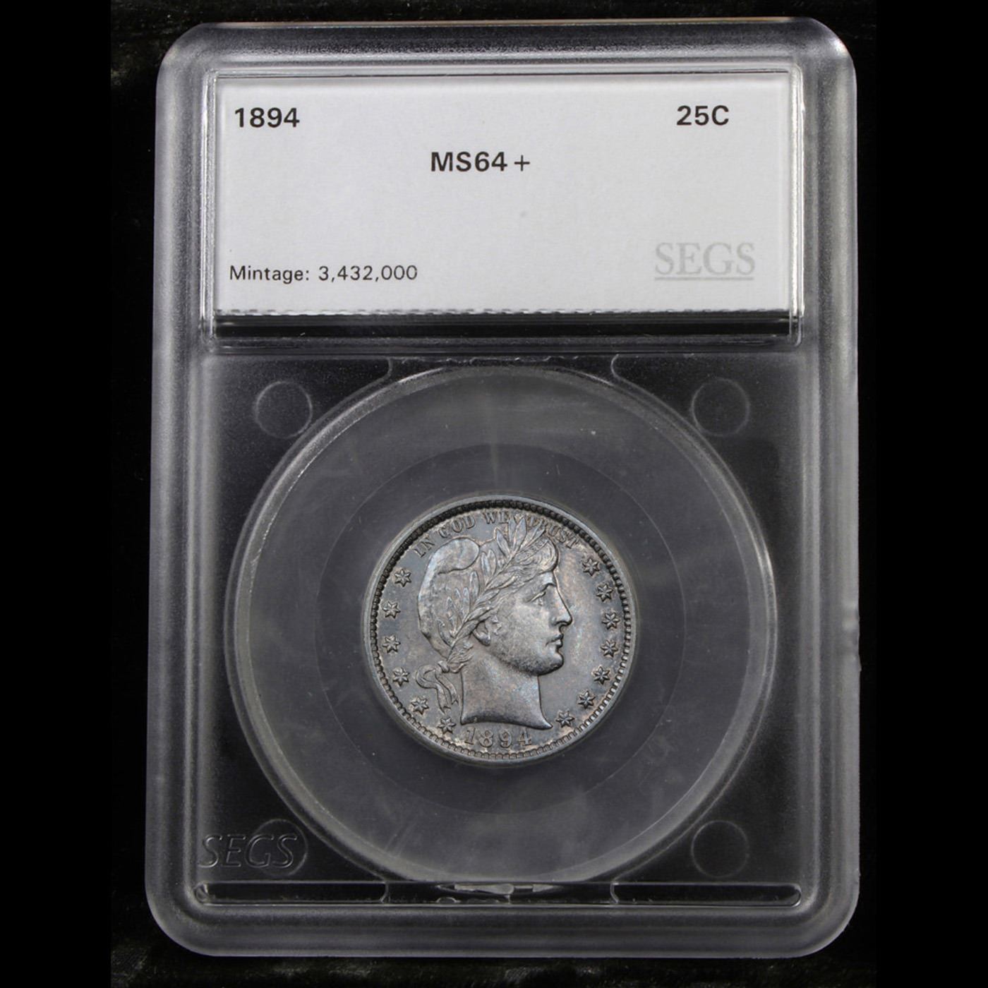 ***Auction Highlight*** 1894-p Barber Quarter 25c Graded ms64+ By SEGS. A Corey's Pick, Bid to Win Coin