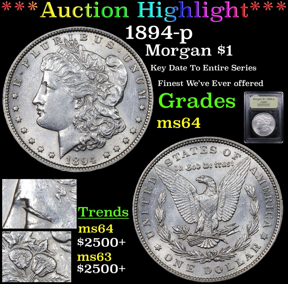 ***Auction Highlight*** 1894-p Key Date To Entire Series Finest We've Ever offered Morgan Dollar $1 Graded Choice Unc By USCG. Outstanding Eye Appeal, High Well rounded Cheek, Well Peaked Eye Brow, Nice Breast Feathers, Ultra Clean, Looks GEM. KEY TO THE SERIES A Corey's Pick, Bid to Win, Don't let it get Away, you might not find its equal Coin. I give this coin my highest recommendation