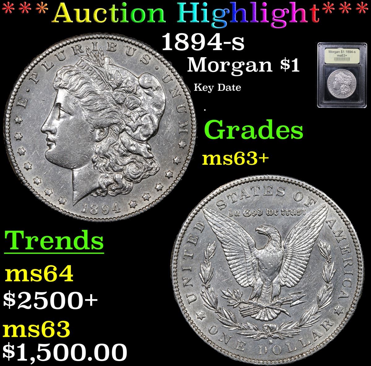 ***Auction Highlight*** 1894-s Key Date . Morgan Dollar $1 Graded Select+ Unc By USCG. A Corey's Pick, Bid to Win, Don't let it get Away, you might not find its equal Coin