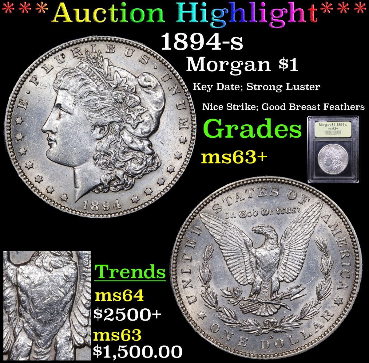 ***Auction Highlight*** 1894-s Key Date; Strong Luster Nice Strike; Good Breast Feathers Morgan Dollar $1 Graded Select+ Unc By USCG. A Corey's Pick, Bid to Win, Don't let it get Away Coin