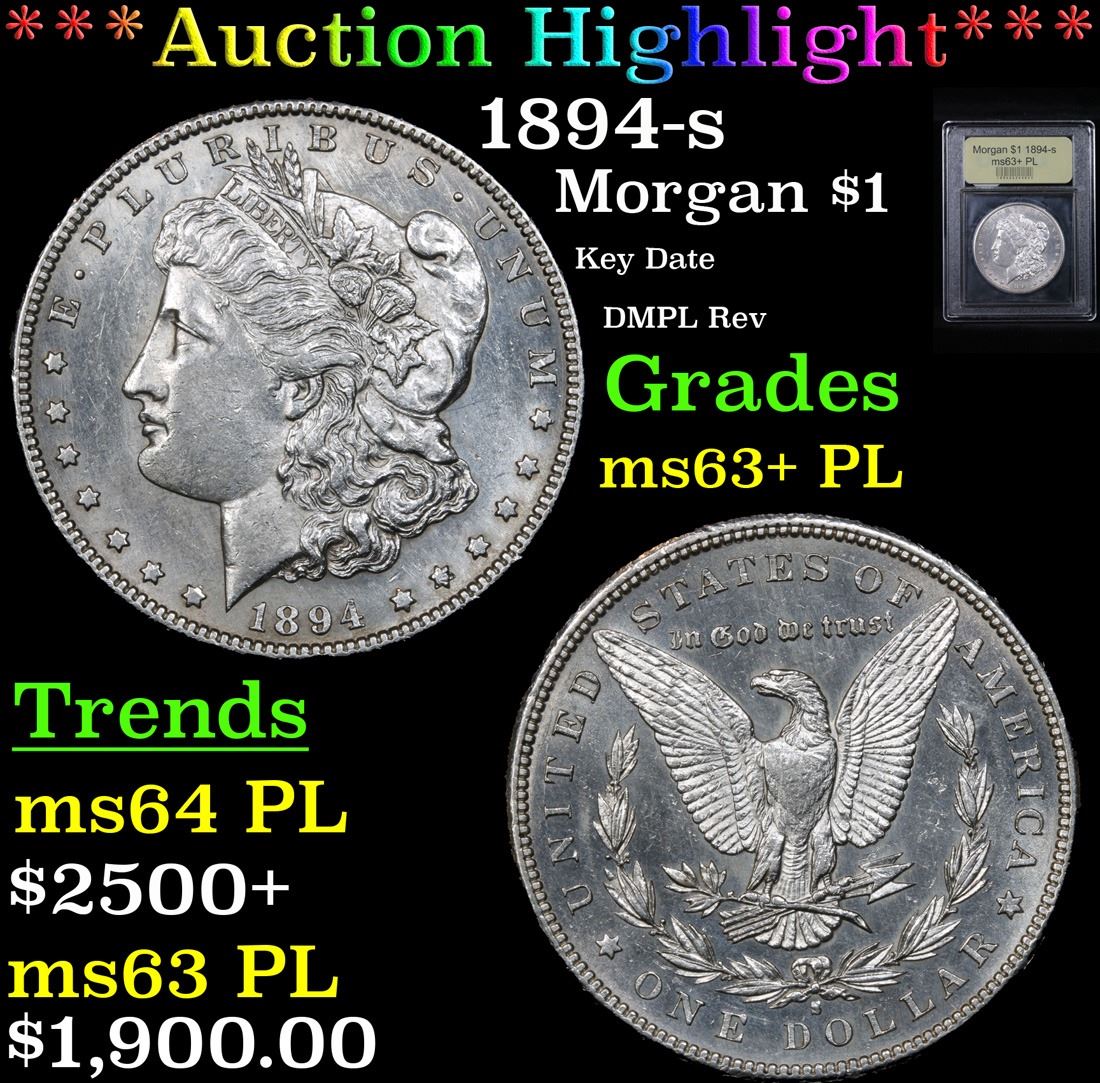 ***Auction Highlight*** 1894-s Key Date DMPL Rev Morgan Dollar $1 Graded Select Unc+ PL By USCG. A Corey's Pick, Bid to Win, Don't let it get Away Coin