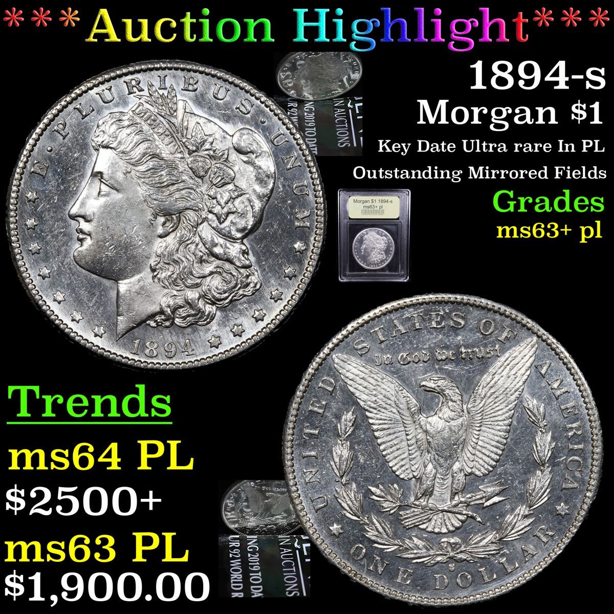 ***Auction Highlight*** 1894-s Key Date Ultra rare In PL Outstanding Mirrored Fields Morgan Dollar $1 Graded Select Unc+ PL By USCG. A Corey's Pick, Bid to Win, Don't let it get Away Coin