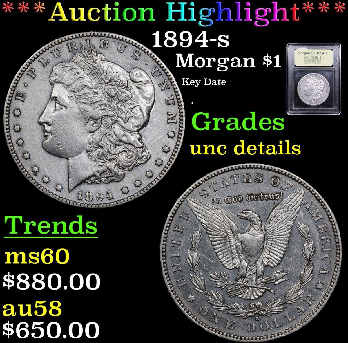 ***Auction Highlight*** 1894-s Key Date . Morgan Dollar $1 Graded Unc Details By USCG.