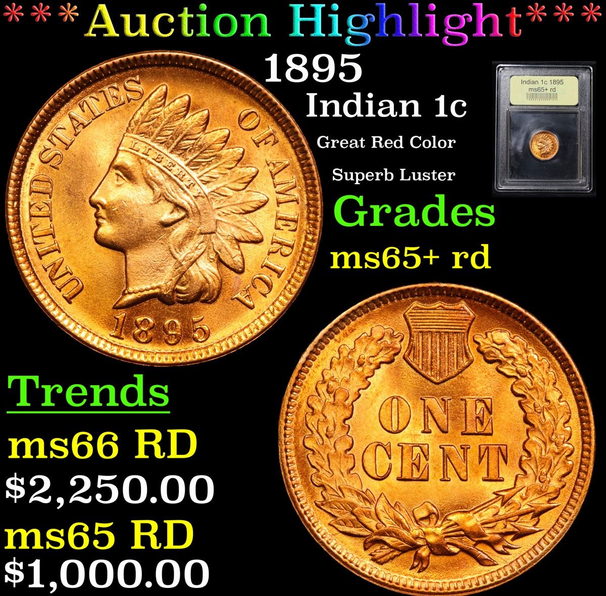 ***Auction Highlight*** 1895 Great Red Color Superb Luster Indian Cent 1c Graded Gem+ Unc RD By USCG. A Corey's Pick, Bid to Win, Don't let it get Away Coin