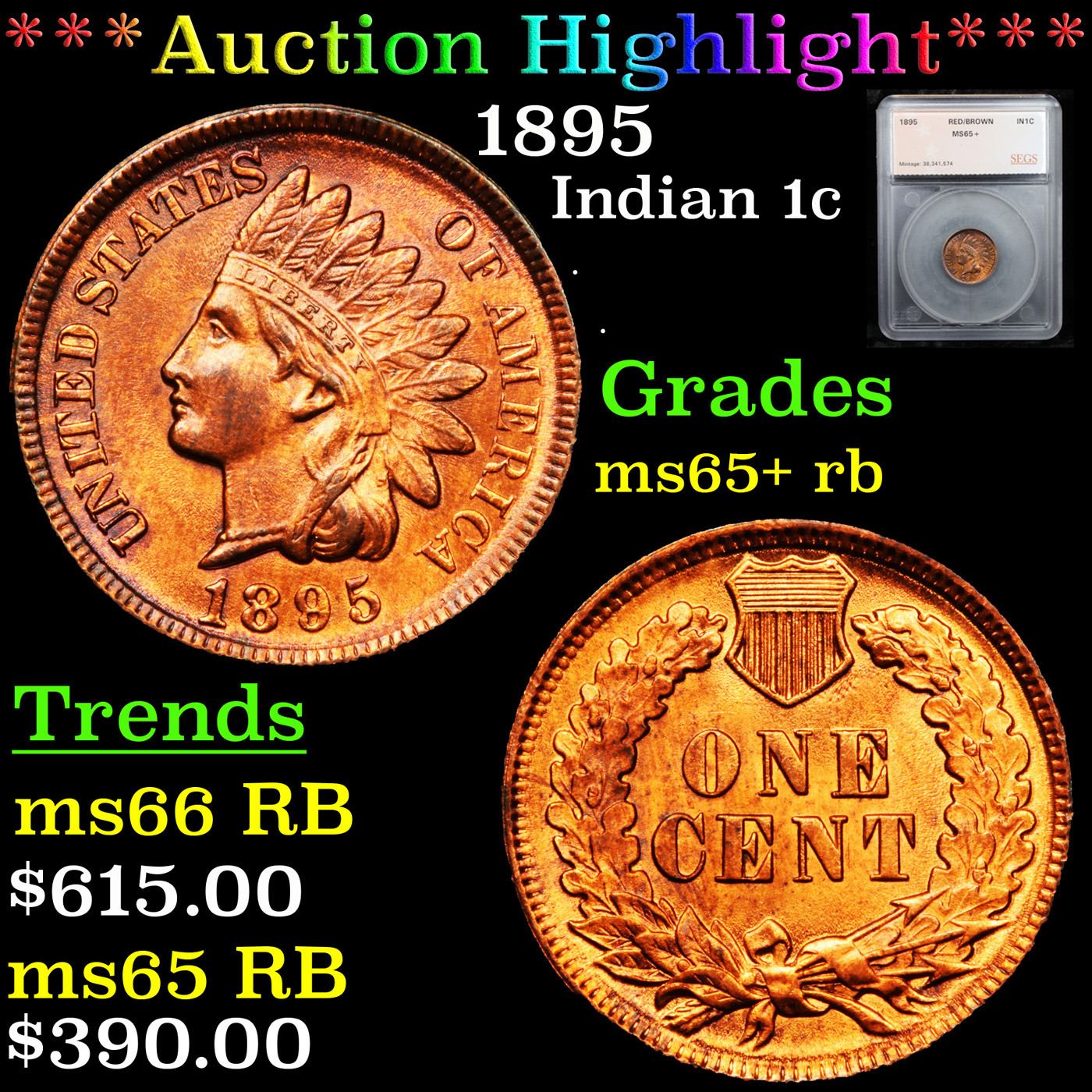 ***Auction Highlight*** 1895 Indian Cent 1c Graded ms65+ rb By SEGS. 0