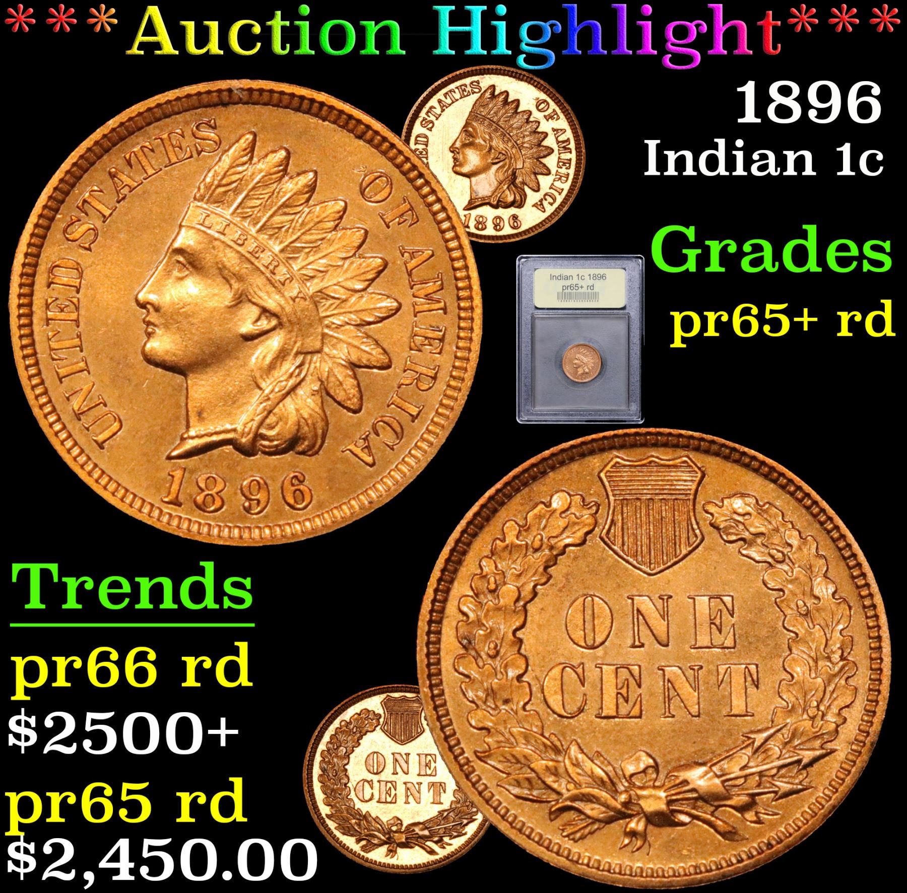 ***Auction Highlight*** 1896 . . Indian Cent 1c Graded Gem+ Proof Red By USCG.