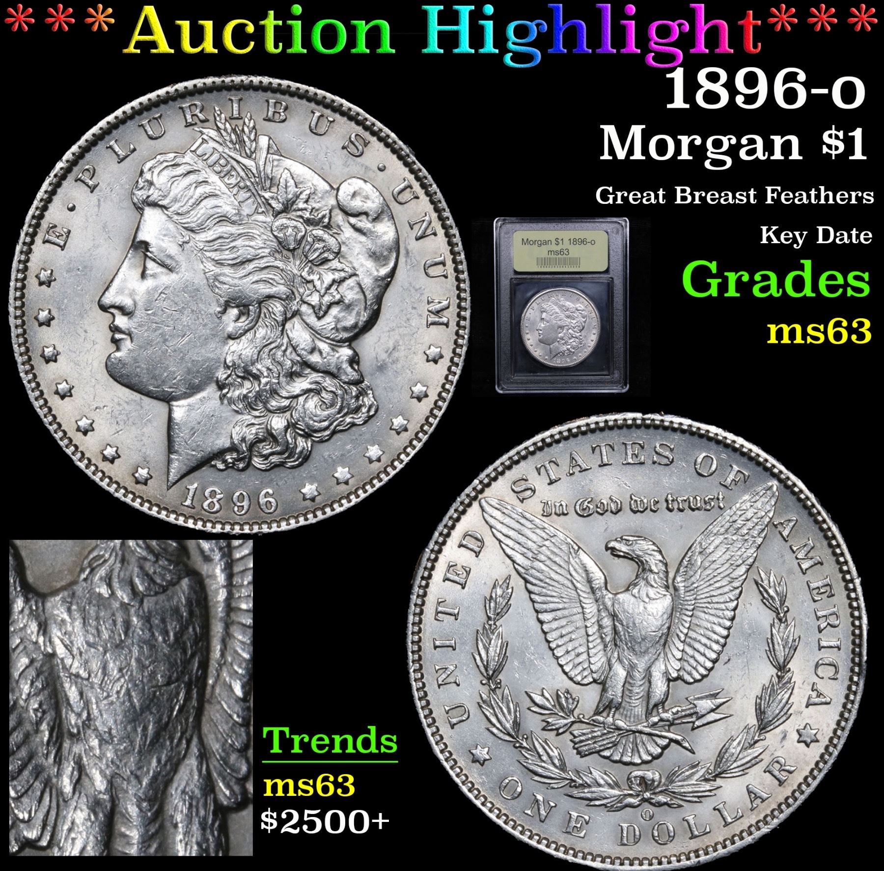 ***Auction Highlight*** 1896-o Morgan Dollar $1 Graded Select Unc By USCG. Great Breast Feathers; Key Date A Corey's Pick, Bid to Win, Don't let it get Away Coin