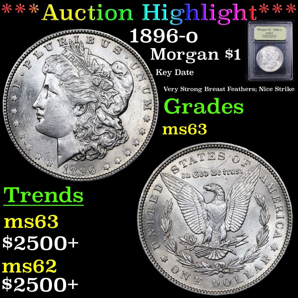 ***Auction Highlight*** 1896-o Key Date Very Strong Breast Feathers; Nice Strike Morgan Dollar $1 Graded Select Unc By USCG.
