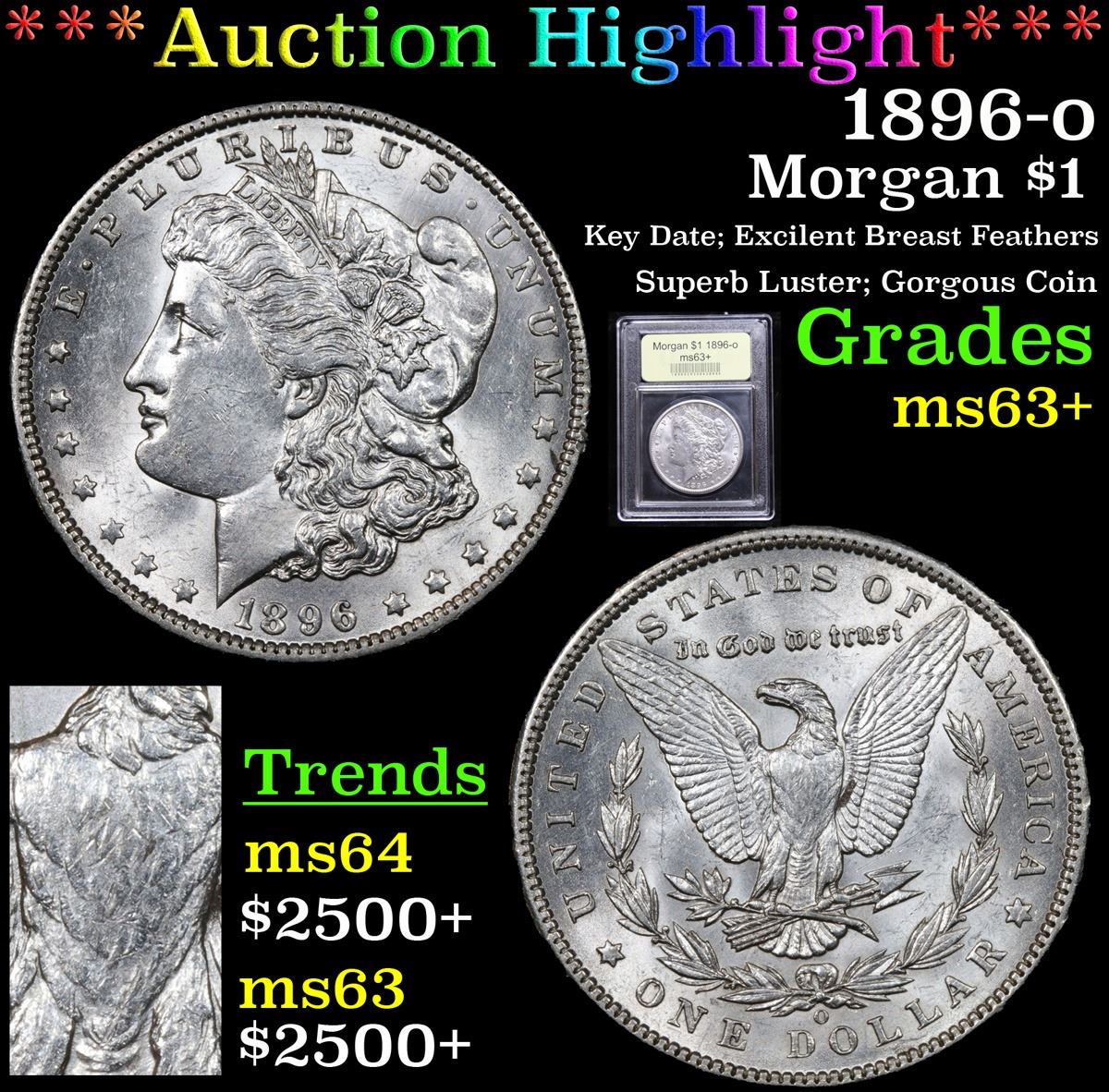 ***Auction Highlight*** 1896-o Key Date; Excilent Breast Feathers Superb Luster; Gorgous Coin Morgan Dollar $1 Graded Select+ Unc By USCG. A Corey's Pick, Bid to Win, Don't let it get Away, you might not find its equal Coin. I give this coin my highest recommendation