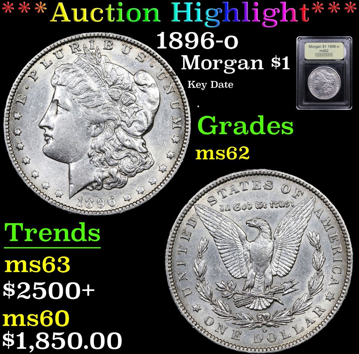 ***Auction Highlight*** 1896-o Key Date . Morgan Dollar $1 Graded Select Unc By USCG.
